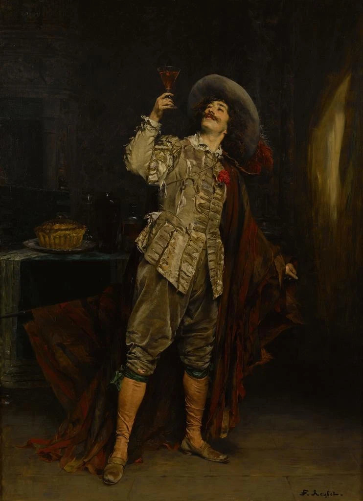 Ferdinand Roybet, francuski malarz XIX wieku, jest ceniony za swoje dzieła łączące historię i emocje. Pod wpływem romantyzmu, potrafił uchwycić sceny codziennego życia oraz momenty historyczne z dużą wrażliwością. Roybet działał w okresie, gdy sztuka francuska szybko się rozwijała, dążąc do wyrażania głębokich uczuć poprzez dynamiczne kompozycje. Jego dzieło, często naznaczone tematami szlachetności i rozdarcia, świadczy o jego zainteresowaniu dramatycznymi opowieściami, czyniąc go nieodłącznym artystą swojej epoki.