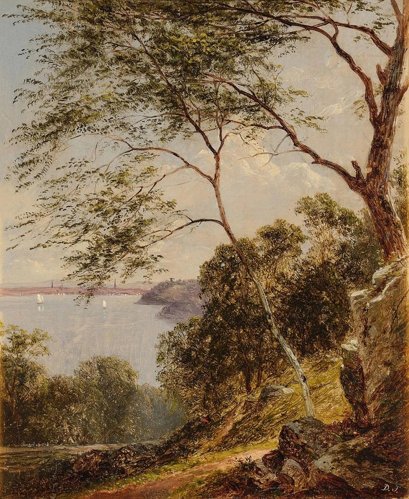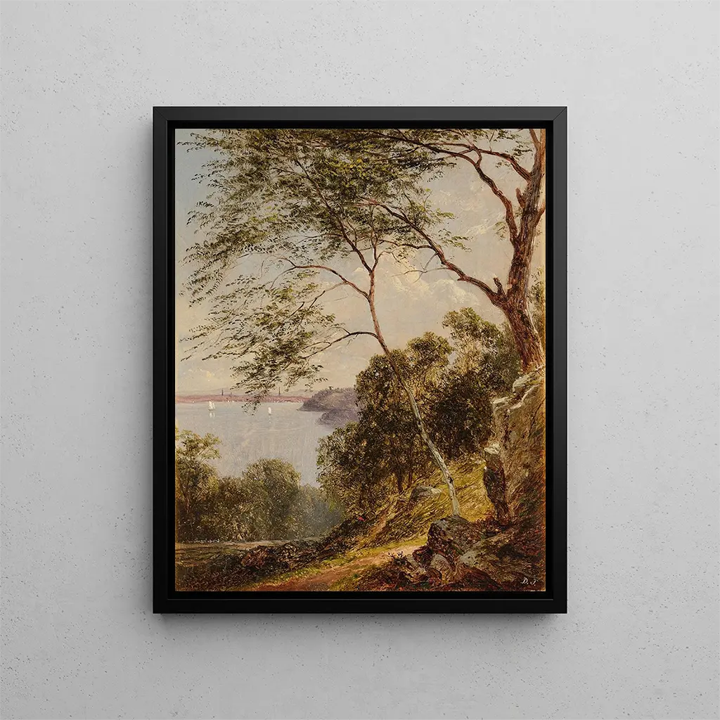 Styl Davida Johnsona jest głęboko zakorzeniony w ruchu szkoły Hudson River, która promuje romantyczne i realistyczne podejście do krajobrazu. W "Depuis Union Hill Hoboken" Johnson używa subtelnie zniuansowanej palety barw, gdzie bujne zielenie drzew mieszają się z migotliwymi refleksami wody. Kompozycja dzieła jest zarówno zrównoważona, jak i dynamiczna, z elementami naturalnymi, które zdają się tańczyć pod wpływem światła. To obraz nie tylko przedstawiający krajobraz; on wywołuje atmosferę, emocję. Każdy pociągnięcie pędzla to zaproszenie do odczuwania delikatności wiatru, szumu wody i ciepła słońca na skórze. To ta zdolność do przekraczania zwykłego wizualnego wrażenia, aby dotknąć duszy, nadaje temu dziełu niezaprzeczalną wyjątkowość.
