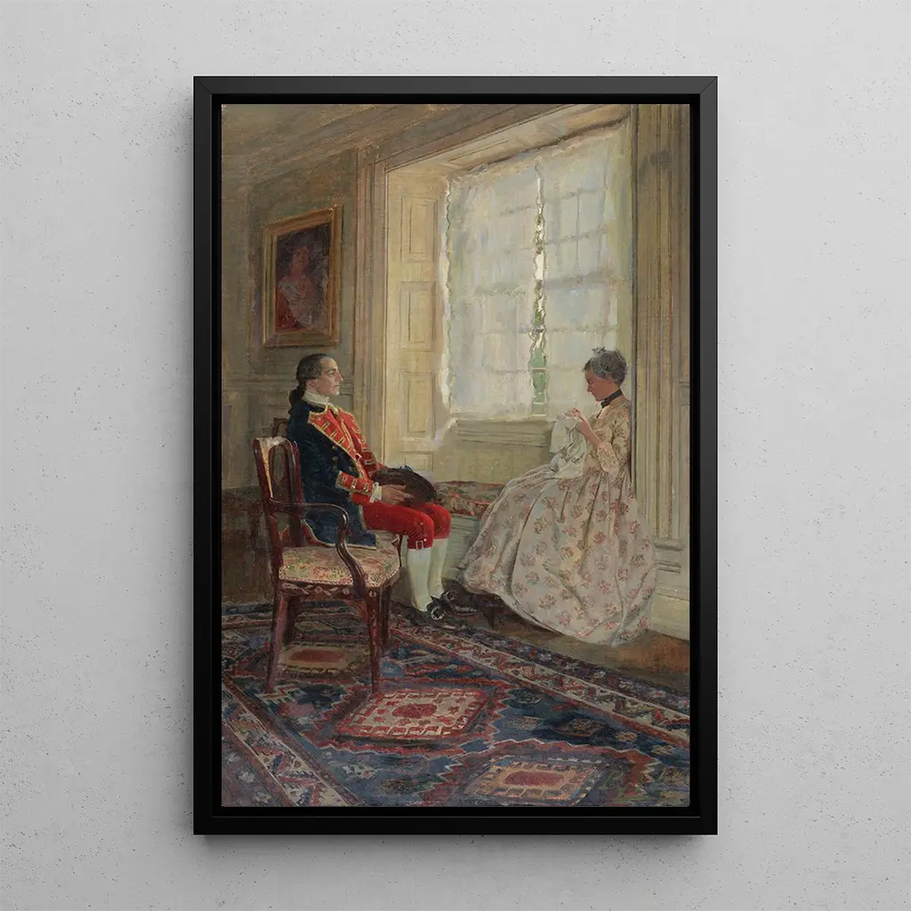 W tej reprodukcji obrazu "Washington et Mary Philipse" Howard Pyle ukazuje intymną scenę pełną emocji. Delikatne kolory i gry światła podkreślają czułość między dwoma postaciami, jednocześnie nawiązując do historycznego kontekstu ich epoki. Technika Pyle'a, łącząca precyzję i wrażliwość, pozwala odczuć głębię uczuć, które ich łączą. Detale kostiumów i akcesoriów dodają wizualnej bogactwa, czyniąc to dzieło zarówno romantycznym, jak i historycznym, prawdziwym świadectwem epoki kolonialnej amerykańskiej.