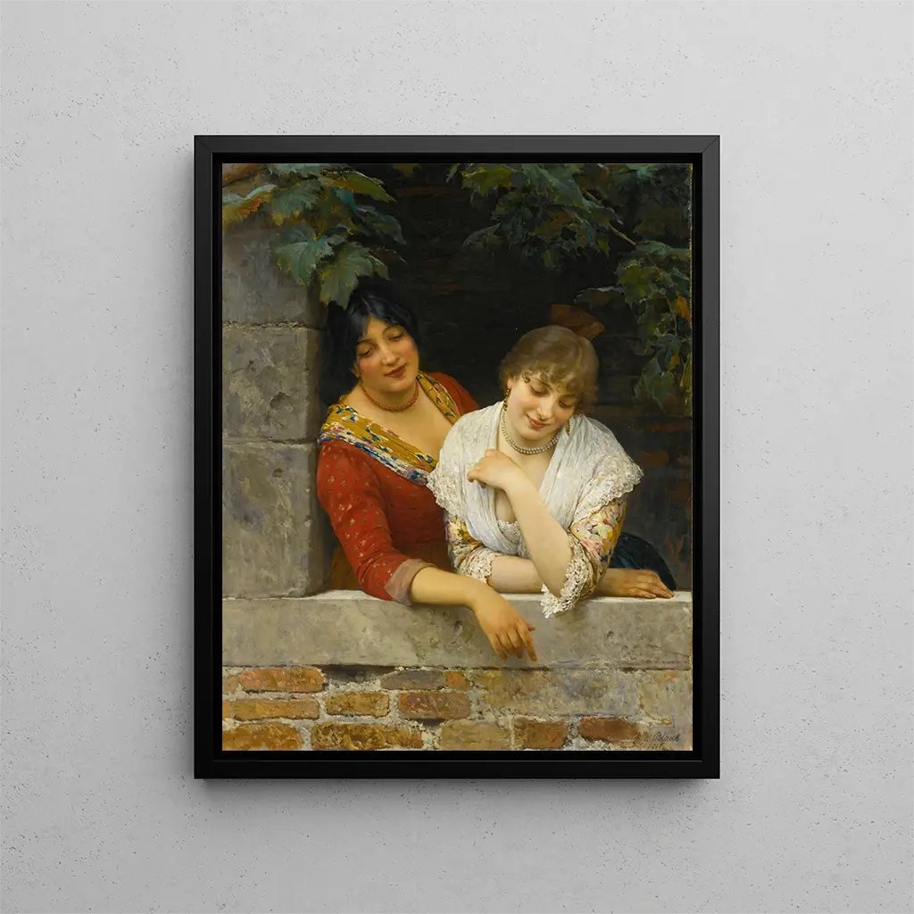 W fascynującym świecie sztuki niektóre dzieła potrafią uchwycić istotę epoki, kultury, a nawet uniwersalnego uczucia. "Weneckie na balkonie" autorstwa Eugen von Blaas jest jednym z tych dzieł, które przenoszą widza w serce Serenissimy, tego miasta o tysiącu odbić i tysiącu historii. To płótno, pełne światła i życia, zachęca do podziwiania piękna codziennych scen, jednocześnie celebrując elegancję postaci na nim przedstawionych. Dzięki temu dziełu artysta oferuje nam okno na zamrożony moment, w którym czas zdaje się zawieszony, a niemal słychać szept kanałów weneckich.