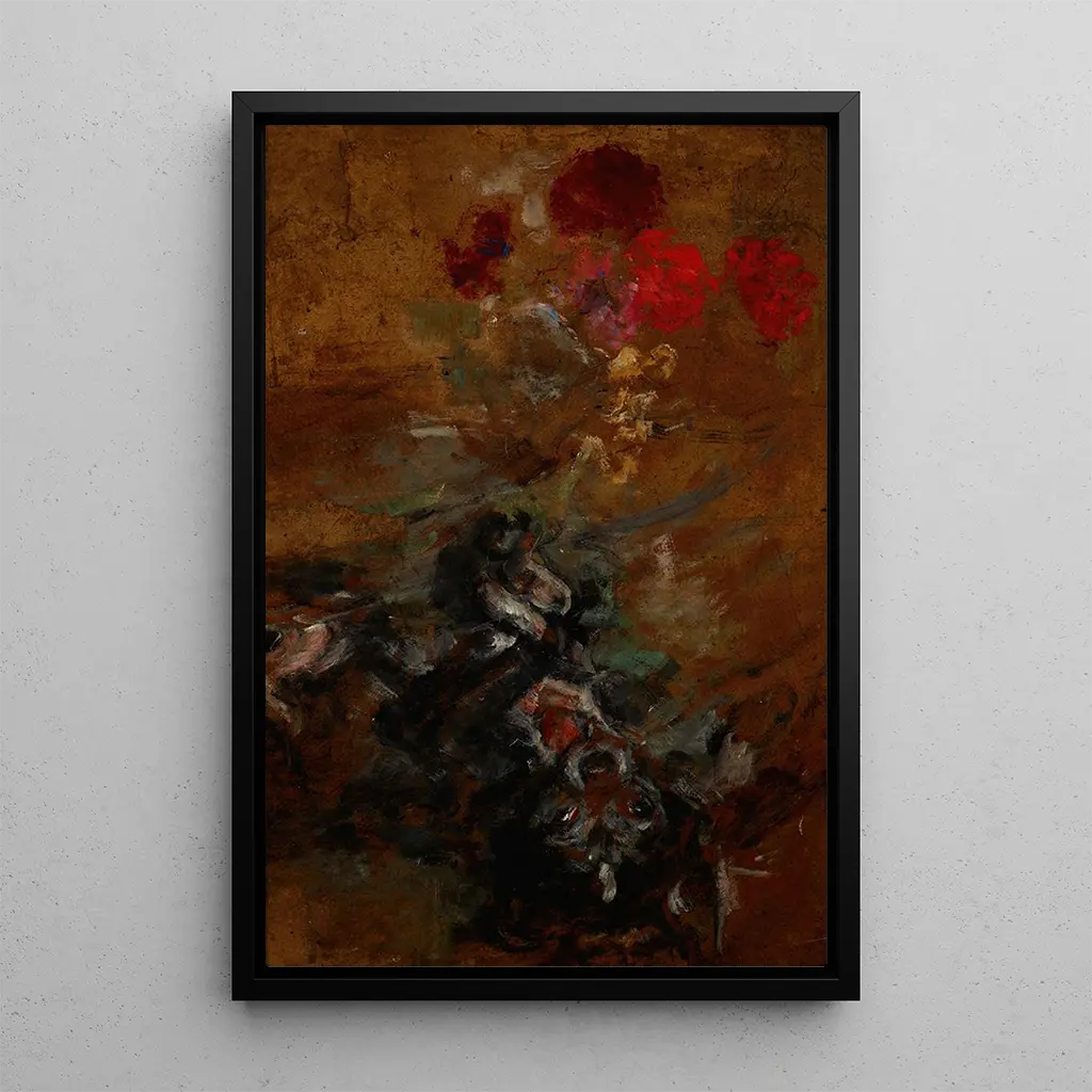 W "Druk artystyczny psa artysty QuiQui" Olga Boznańska z czułością uchwyciła niewinność i ciekawość czworonożnego towarzysza. Ciepłe kolory i delikatne odcienie sierści psa tworzą intymną i pełną czułości atmosferę. Kompozycja podkreśla wyraziste spojrzenie zwierzęcia, zachęcając widza do odczuwania emocjonalnego połączenia. Technika Boznańskiej, charakteryzująca się płynnymi pociągnięciami pędzla, ożywia tę scenę, przemieniając prosty portret zwierzęcia w prawdziwe dzieło sztuki pełne wrażliwości.