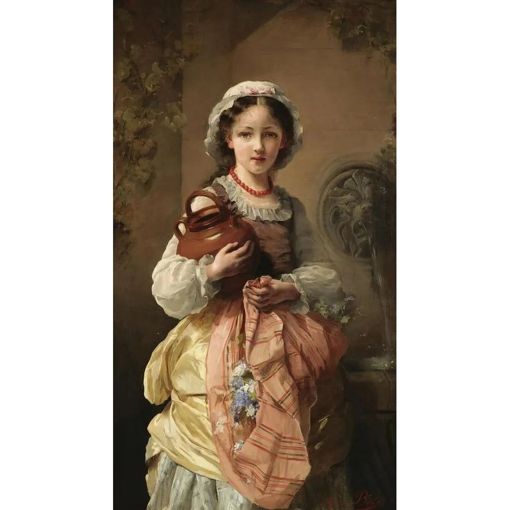 La Comtesse Jeanne Bole, artiste de la fin du XIXe siècle, a su capturer l'essence de son époque à travers ses œuvres. Influencée par le mouvement impressionniste, elle a exploré les thèmes de la nature et de la vie quotidienne avec une sensibilité unique. Son travail reflète une volonté de représenter la beauté simple des moments de la vie, tout en intégrant des éléments de modernité. À la fontaine est un exemple emblématique de son style, mêlant réalisme et poésie, et témoignant de l'importance de la femme dans l'art de son temps. Son héritage artistique continue d'inspirer et de toucher les amateurs d'art.