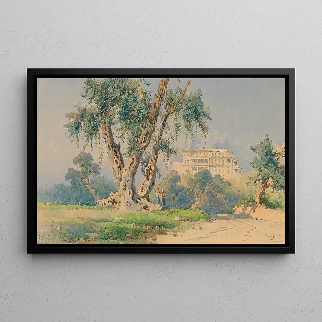 Achilleion : podróż w serce mitologii Achilleion, ikoniczne dzieło Angelosa Giallinasa, przenosi nas w fascynujący świat mitologii. To płótno, bogate w kolory i szczegóły, przedstawia słynny pałac Achillesa, miejsce pełne historii i legend. Żywe odcienie niebieskiego i zielonego nawiązują do Morza Egejskiego, podczas gdy elementy architektoniczne świadczą o ponadczasowej wielkości. Technika Giallinasa, łącząca realizm z romantyzmem, tworzy atmosferę zarazem majestatyczną i melancholijną. Każdy element kompozycji zdaje się opowiadać epicką historię Achillesa, bohatera mitologii greckiej, i zachęca do kontemplacji jego wyczynów. Angelos Giallinas : artysta w sercu greckiej tradycji Angelos Giallinas, grecki malarz z XIX wieku, jest znany ze swoich dzieł inspirowanych mitologią i historią Grecji. Jego styl, osadzony w romantyzmie, odzwierciedla głębokie podziw dla dziedzictwa kulturowego swojego kraju. Giallinas potrafił uchwycić istotę greckiego piękna poprzez swoje obrazy, często inspirowane lokalnymi krajobrazami i legendami. Achilleion, jedno z jego najsłynniejszych dzieł, doskonale ilustruje jego talent do łączenia historii z sztuką, jednocześnie oddając hołd bogactwu kultury greckiej. Jego artystyczne dziedzictwo trwa, inspirując kolejne pokolenia artystów. Wyjątkowa dekoracyjna reprodukcja z wieloma atutami Reprodukcja Achilleion to wybór dekoracyjny, który wzbogaci Twoją przestrzeń życiową, niezależnie od tego, czy jest to salon, biuro czy sypialnia. Dzięki znakomitej jakości druku, to płótno zapewnia wierne odwzorowanie kolorów i szczegółów, które z pewnością zachwycą miłośników sztuki. Jego estetyczny urok, łączący mitologię z architekturą, czyni go elementem dekoracyjnym budzącym zainteresowanie i ciekawość. Wprowadzając to dzieło do swojej aranżacji, dodajesz elegancji i kultury swojemu wnętrzu, jednocześnie oddając hołd talentowi ikonicznego artysty greckiej tradycji.