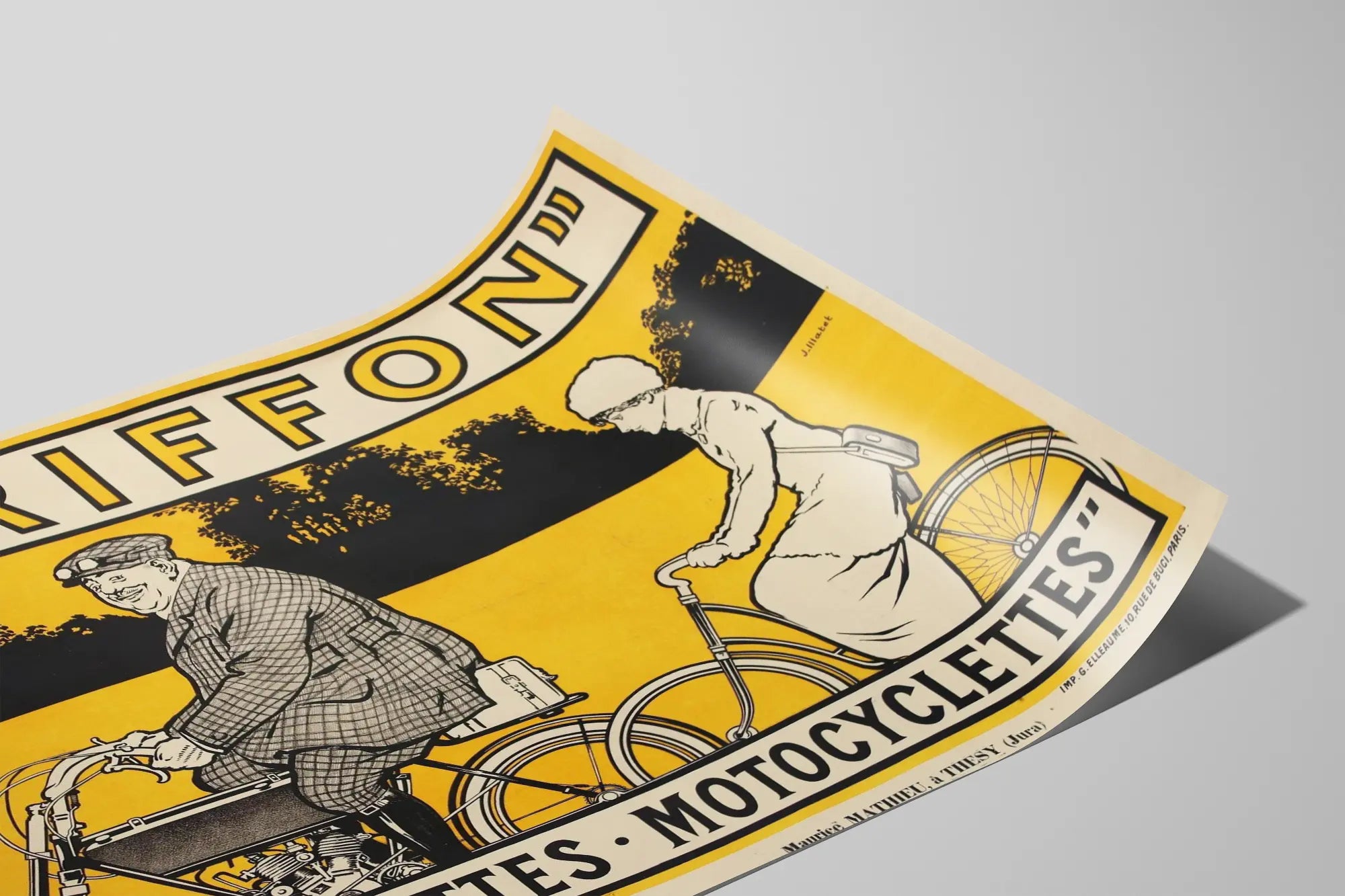 Affiche vintage Griffon Bicyclette et Motocyclette jaune