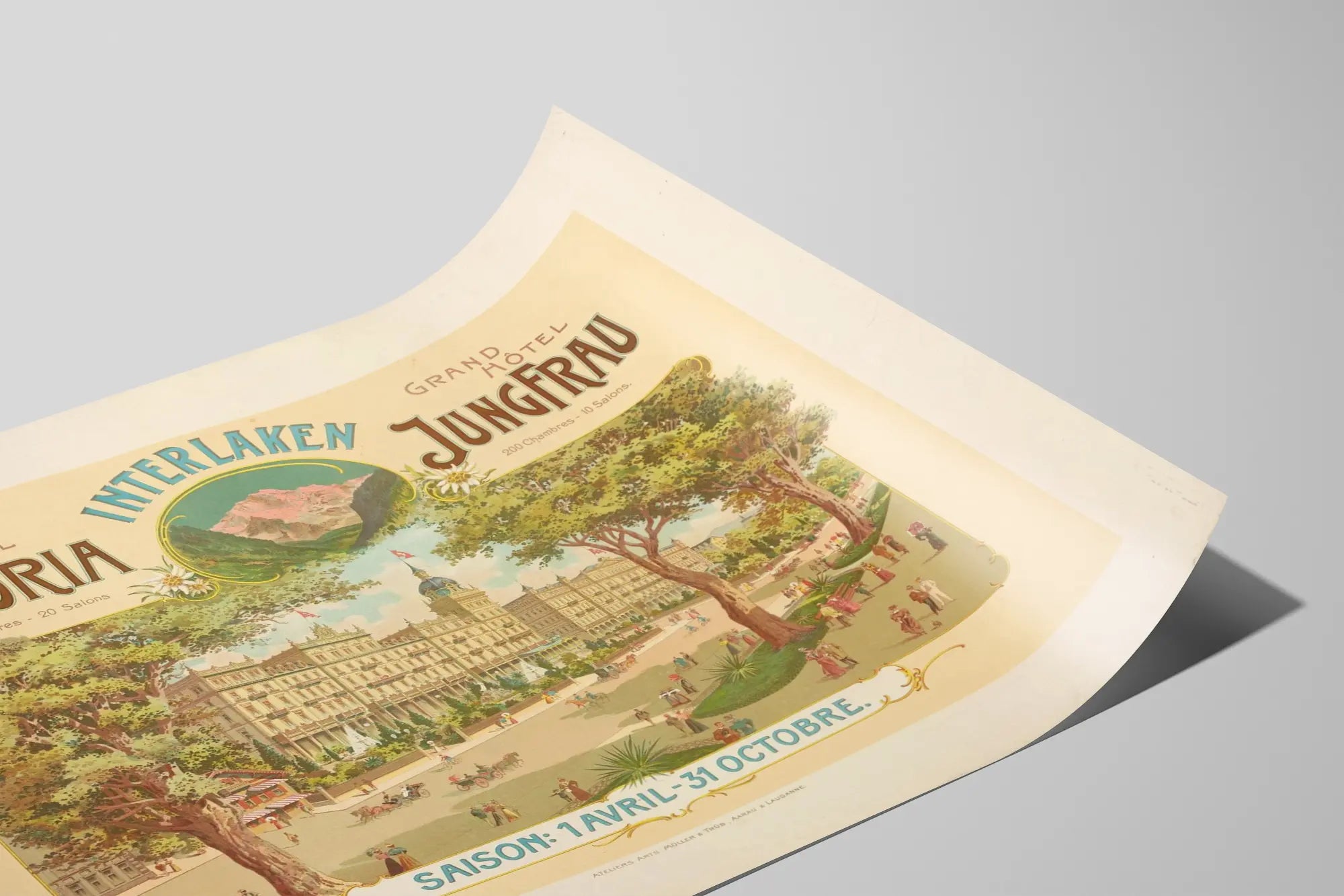 Affiche vintage Hôtel Victoria et Hôtel Jungfrau Interlaken