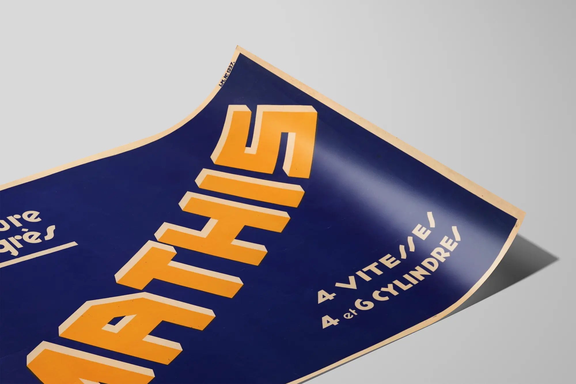 Ta plakat vintage honoruje markę Mathis z hasłem „Samochód postępu”. Jej prosty i wyrazisty projekt graficzny opiera się na ciemnoniebieskim tle, podkreślając nazwę „MATHIS” w dużych, pomarańczowych literach z białym cieniem, tworząc silny kontrast wizualny. Napisy zawierają również „4 biegi, 4 i 6 cylindrów”, podkreślając techniczne osiągnięcia samochodów Mathis z tamtej epoki. Ta plakat wyróżnia się stylem typograficznym art déco, oferując retro i elegancki akcent, który przypadnie do gustu miłośnikom motoryzacji i vintage’owych dekoracji ściennych. Idealna do industrialnego wystroju ścian lub wnętrz podkreślających historyczny aspekt motoryzacji, ta reprodukcja wnosi kolor i autentyczność. Doskonale wpasuje się w salon, biuro czy warsztat dla entuzjastów starych plakatów. Ten obraz na ścianę to zaproszenie do podróży w czasie, odzwierciedlając rozwój technologii motoryzacyjnej i postęp mechaniczny. Unikalny element łączący sztukę graficzną z dziedzictwem przemysłowym, idealny do kolekcji plakatów lub oryginalnej przestrzeni dekoracyjnej.