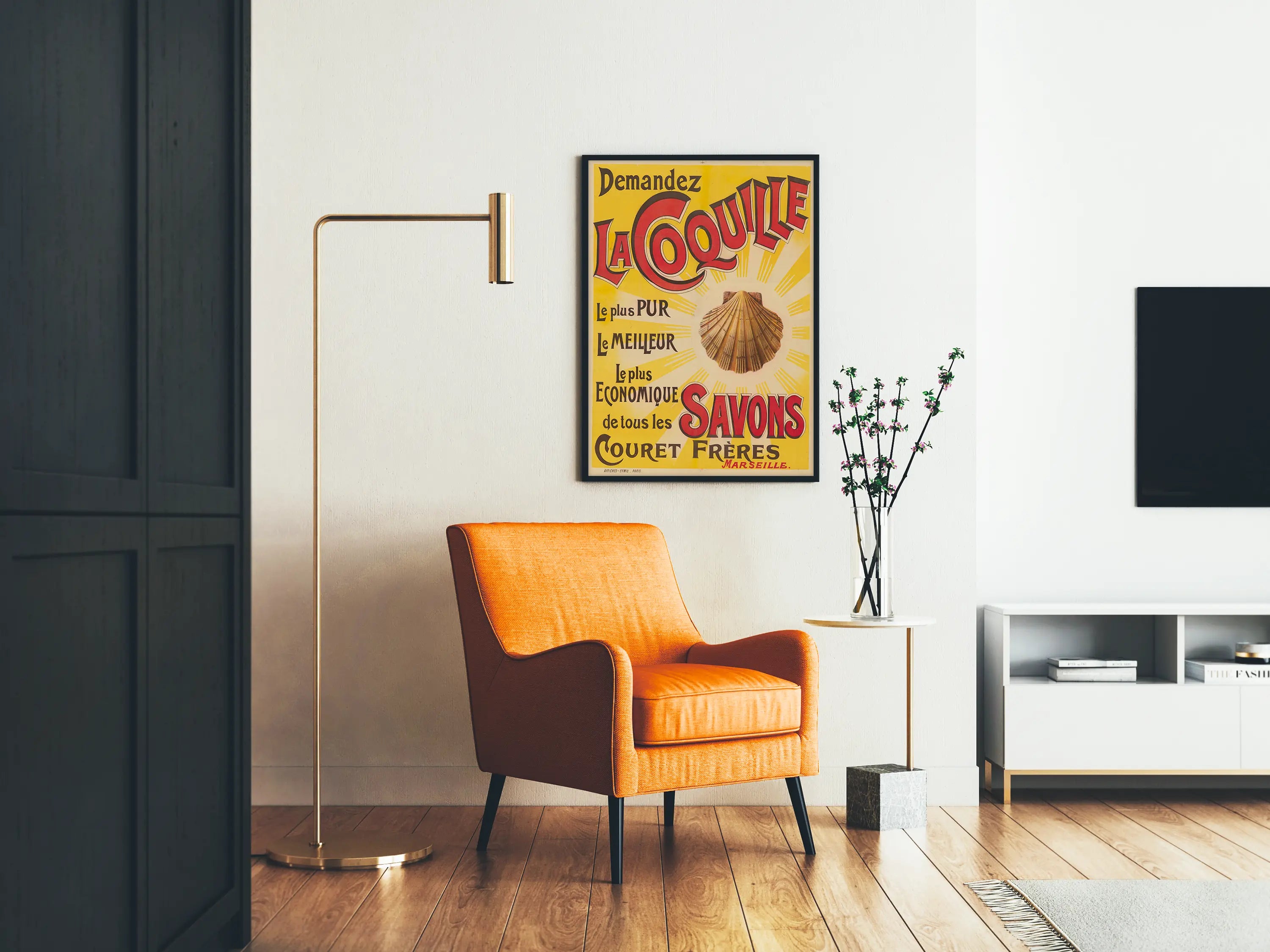 Poznaj ten autentyczny plakat vintage poświęcony promocji mydła „La Coquille” od Courret Frères, producenta z Marsylii. Ten plakat reklamowy podkreśla główne cechy produktu: czystość, wysoką jakość i oszczędność, dzięki efektownej prezentacji wizualnej z jaskrawym żółtym tłem i muszlą w centrum. Idealny do dekoracji ścian, ten obraz reklamowy doda Twojemu wnętrzu nutę retro i kolorów, niezależnie od tego, czy jest nowoczesne, czy klasyczne. Jego stary, graficzny styl, typowy dla plakatów z epoki, czyni go zarówno estetycznym elementem dekoracyjnym, jak i obiektem pełnym historii. Plakat jest szczególnie skierowany do miłośników vintage’owych dekoracji ścian lub kolekcjonerów sztuki reklamowej. Jego format umożliwia łatwe zawieszenie w salonie, kuchni lub biurze, gdzie przyciągnie uwagę swoim designem i imponującymi literami. Ten element dekoracji ścian jest idealny, aby dodać autentycznego charakteru i odrobiny elegancji Twojej przestrzeni. Wybierz ten stary plakat, który podkreśla ikoniczny produkt, symbol tradycyjnej produkcji i mocnej komunikacji. Wyeksponuj swoje ściany tym unikalnym obrazem, który podkreśla zarówno historię mydeł marsylskich, jak i sztukę graficzną dawnych reklam.