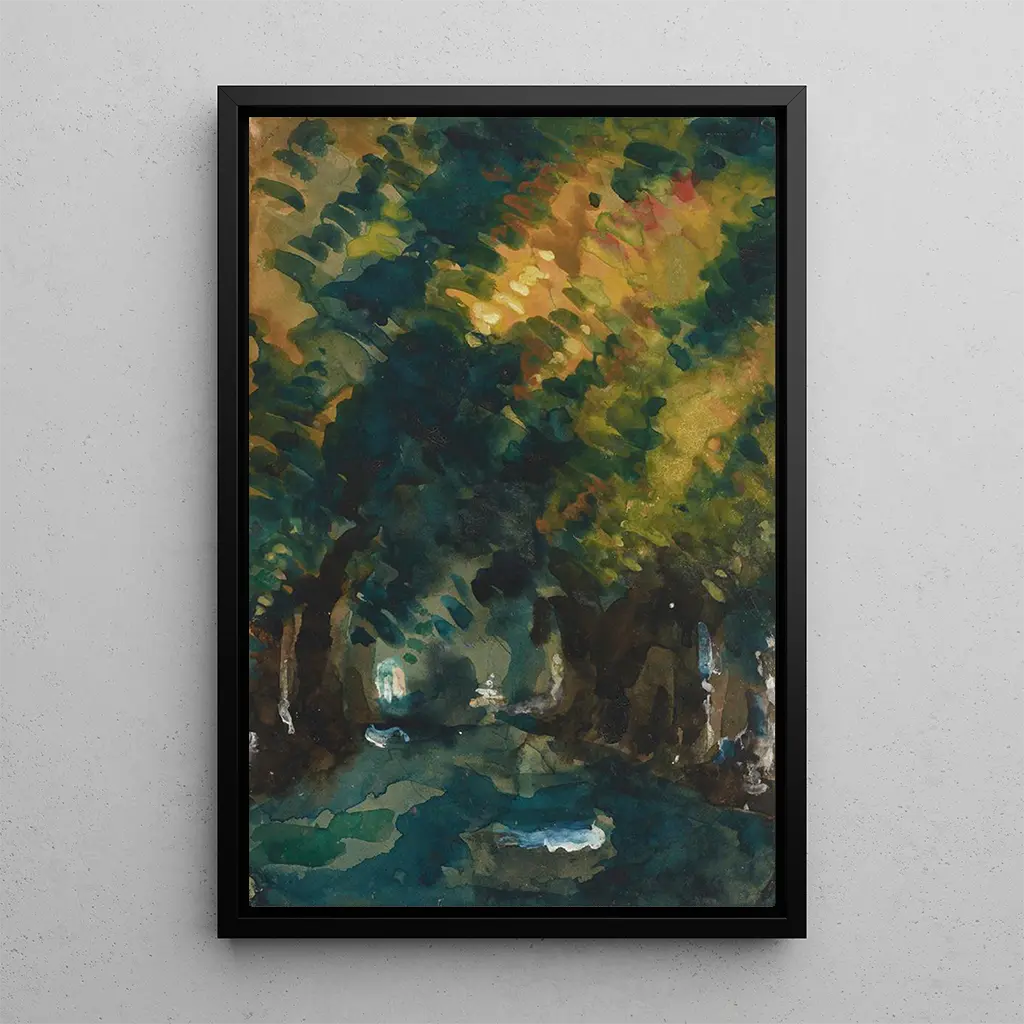 Paul Cézanne, nacido en 1839, es una figura emblemática del postimpresionismo, marcando una transición hacia el arte moderno. Sus paisajes, como Une allée, testimonian su deseo de capturar la estructura y la esencia de la naturaleza. Influenciado por los impresionistas, sin embargo, buscó ir más allá de la simple representación, integrando formas geométricas y colores vibrantes. Cézanne ha redefinido así la manera en que se percibían los paisajes, influyendo en artistas como Picasso y Braque. Su obra sigue siendo una referencia imprescindible para entender la evolución del arte en el cambio de siglo XX.