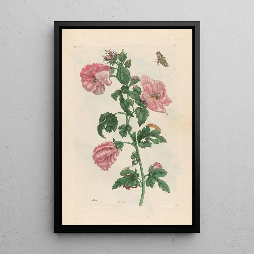 Druk artystyczny Althéa, wykonany przez Marię Sibyllę Merian, przenosi nas w świat delikatności i fascynacji naturą. Drobiazgowe szczegóły kwiatów i owadów, oddane z niezwykłą precyzją, świadczą o uważnym obserwowaniu artystki. Żywe kolory i subtelne odcienie tworzą harmonijną kompozycję, w której każdy element wydaje się współgrać z innymi. To dzieło, będące połączeniem sztuki i nauki, zaprasza do głębokiej kontemplacji piękna świata naturalnego, jednocześnie celebrując różnorodność życia.