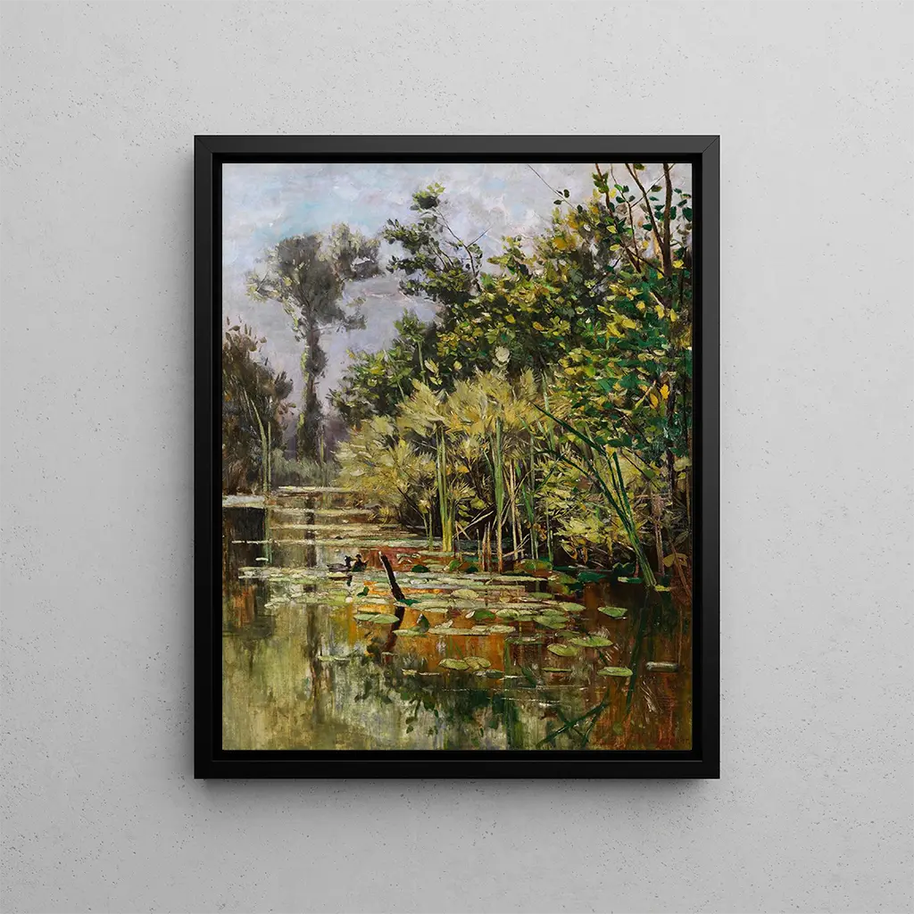 Karl Hagemeister jest niemieckim malarzem pejzażystą XIX wieku, znanym z poetyckich przedstawień natury. W 'Altwasser z kaczkami jesienią' uchwycił spokojne piękno jesiennego krajobrazu, gdzie złote światło słońca odbija się od spokojnej wody, tworząc spokojną atmosferę. Kaczki, dodające scenie odrobinę życia, są malowane z szczególną starannością, świadcząc o dokładnym obserwowaniu artysty. To dzieło, będące jednocześnie celebracją natury, wywołuje również uczucia nostalgii i spokoju. Dziś może wprowadzić ciepły i przyjazny akcent do każdego wnętrza. Zapraszamy do odkrycia druku artystycznego tego dzieła na Artem Legrand.