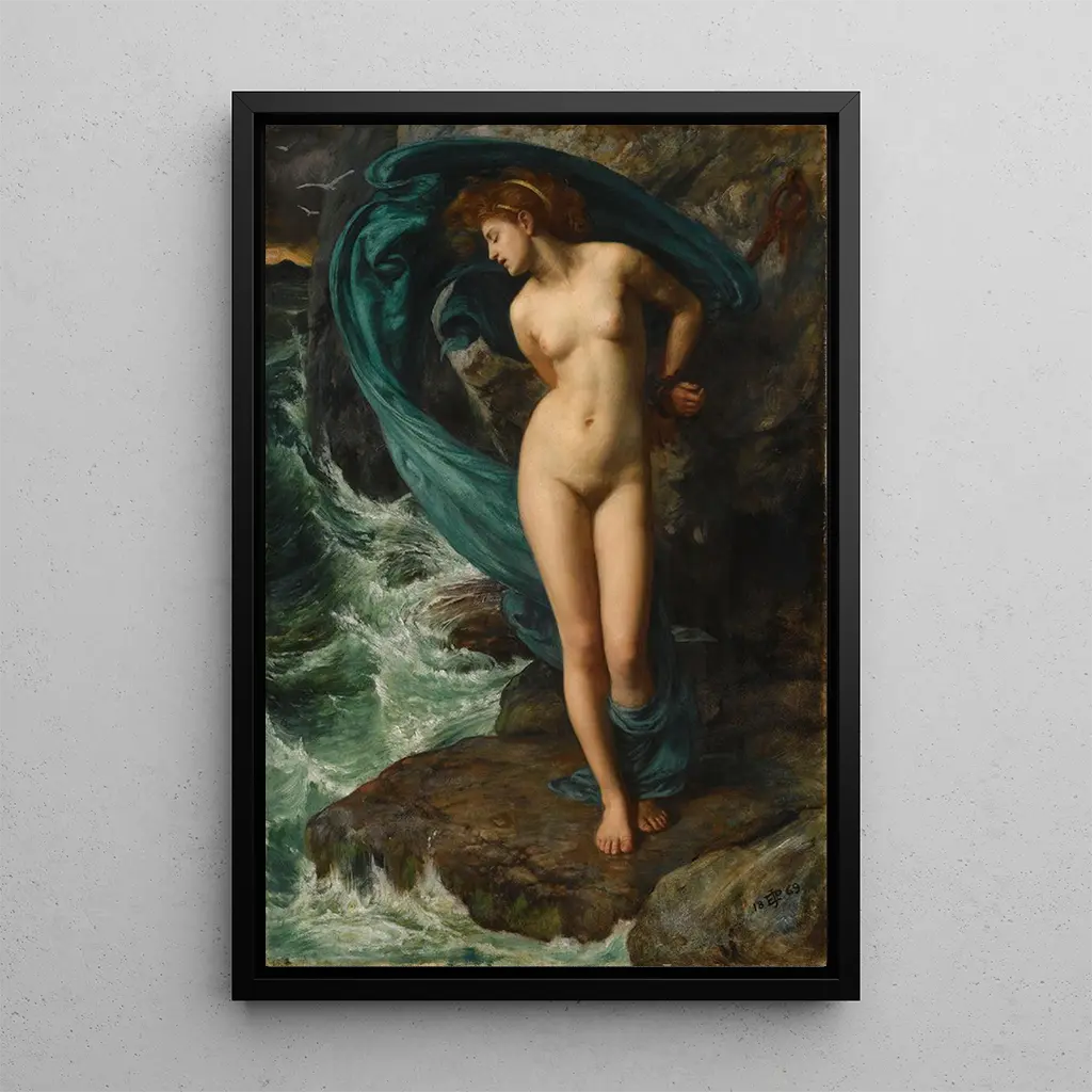 W tym fascynującym dziele Edward John Poynter przenosi nas do świata mitologii, gdzie piękno i tragedia się spotykają. Kompozycja przedstawia Andromedę, uwięzioną na skałach, otoczoną burzliwym pejzażem morskim. Żywe kolory i drobiazgowe detale fałdów jej stroju kontrastują z ciemnymi odcieniami tła, tworząc atmosferę zarówno dramatyczną, jak i poetycką. Poynter używa techniki malarstwa olejnego, która podkreśla jasność odcieni, ożywiając tę mitologiczną scenę. Dzieło zachęca widza do kontemplacji piękna i cierpienia bohaterki, jednocześnie poruszając uniwersalne tematy poświęcenia i odkupienia.