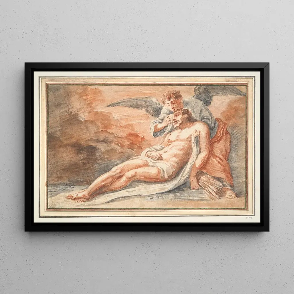 Reprodukcja dzieła "Ange pocieszający złożenie Chrystusa" przenosi nas w moment głębokich emocji i spokoju. Ta anonimowa płótno, o uderzającej urodzie, przedstawia anioła czuwającego nad ciałem Chrystusa, symbolizując współczucie i nadzieję w obliczu cierpienia. Delikatne kolory i subtelne światła tworzą kojący nastrój, podczas gdy technika artysty, choć mniej rozpoznawalna, świadczy o mistrzostwie w kształtach i wyrazach. Każdy szczegół, od skrzydeł anioła po cechy Chrystusa, jest starannie dopracowany, zachęcając widza do odczuwania czułości tej świętej sceny.