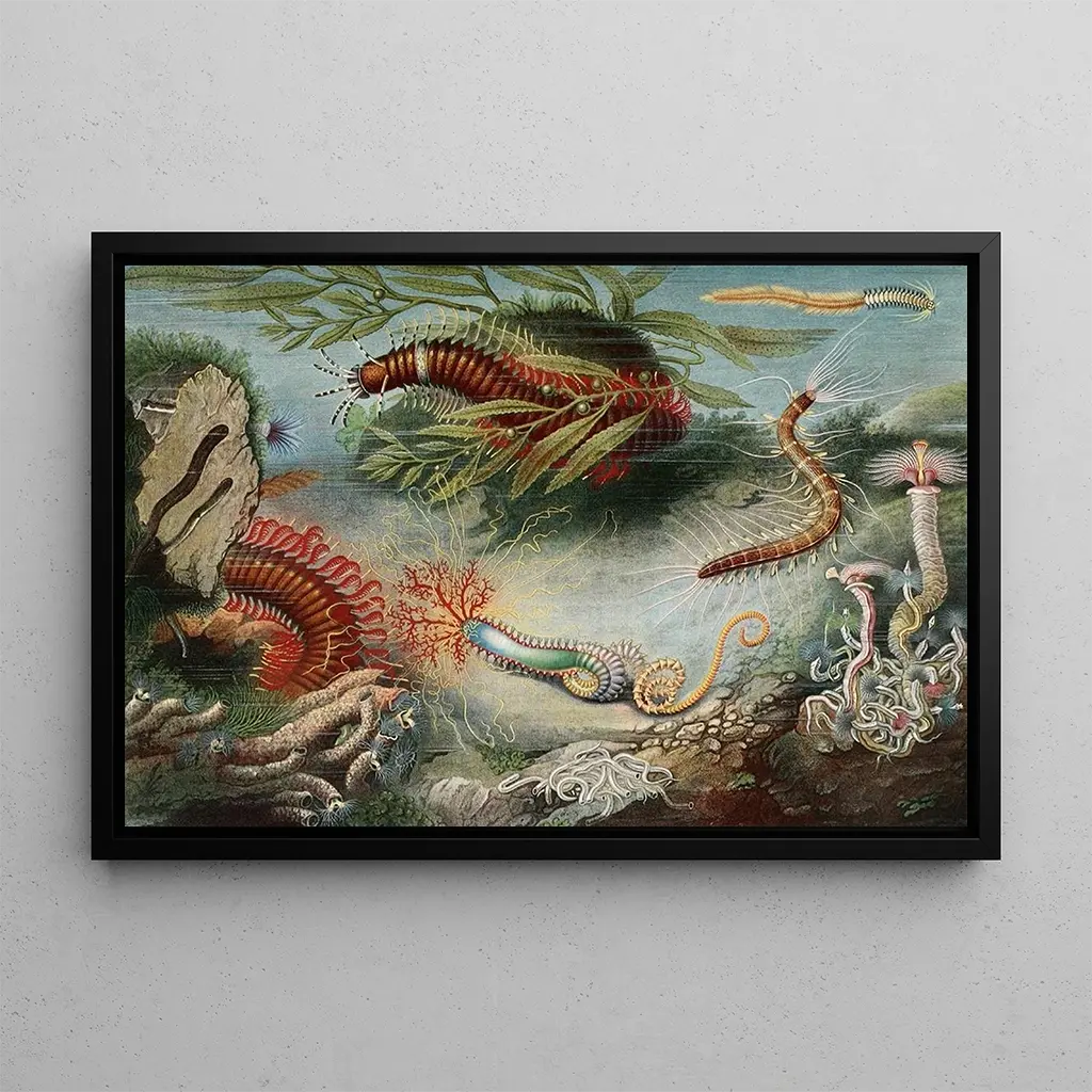 Druk artystyczny Annélides autorstwa Alfreda Frödl przedstawia serię fascynujących ilustracji, które ukazują różnorodność i złożoność dżdżownic. Każdy szczegół jest starannie odwzorowany, ukazując tekstury i unikalne kształty tych często nieznanych stworzeń. Kolory, choć czasami dyskretne, są używane z wyczuciem, aby podkreślić cechy anatomiczne annélides. To dzieło zaprasza do wizualnej eksploracji, łącząc naukę z sztuką i oferując nowe spojrzenie na te organizmy kluczowe dla naszych ekosystemów.