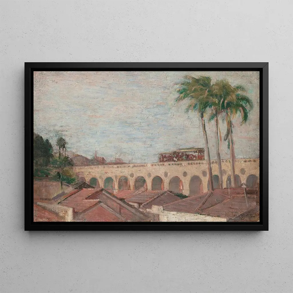 Druk artystyczny Arcos da Lapa autorstwa Eliseu Visconti przywołuje zawieszoną w czasie chwilę, w której majestatyczna architektura łączy się z żywym życiem Rio de Janeiro. Imponujące łuki, zanurzone w ciepłych i jasnych odcieniach, wydają się zapraszać widza do zanurzenia się w tętniącej życiem atmosferze miasta. Technika artysty, łącząca akwarelę i olej, tworzy zarówno łagodną, jak i dynamiczną atmosferę, uchwycając esencję tego ikonicznego monumentu. Drobne szczegóły otaczających budynków i przechodniów dodają narracyjnego wymiaru, czyniąc ten obraz żywym i angażującym.