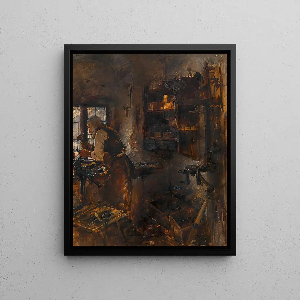 Atelier druku artystycznego kowalstwa - Carl von Merode – Fascynujące wprowadzenie W fascynującym świecie sztuki niektóre dzieła wyróżniają się zdolnością do uchwycenia istoty epoki, opowiadając jednocześnie ponadczasową historię. "Atelier druku artystycznego kowalstwa - Carl von Merode" jest jednym z takich dzieł. Przenosi nas do świata, w którym rzemieślnicza wiedza i estetyka spotykają się, ukazując ukrytą piękność dawnych zawodów. To dzieło, zarazem techniczne i poetyckie, przywołuje precyzyjne gesty rzemieślników podczas pracy, jednocześnie celebrując ludzką kreatywność. Atmosfera emanująca z tego obrazu przenosi widza w podróż sensoryczną, gdzie każdy szczegół zdaje się szeptać opowieści o erudycji i zręczności. Styl i wyjątkowość dzieła Dzieło Carla von Merode charakteryzuje się dokładnym i realistycznym podejściem, które podkreśla złożoność codziennych zadań. W "Atelier druku artystycznego kowalstwa" artysta potrafi stworzyć intymną atmosferę, w której cienie i światła odgrywają kluczową rolę. Delikatne odcienie kolorów oraz precyzja form świadczą o głębokim szacunku dla przedstawianego tematu. Kompozycja jest starannie zaaranżowana, pozwalając spojrzeniu zagubić się w szczegółach, od narzędzi kowalstwa po skoncentrowane twarze rzemieślników. To dzieło nie ogranicza się do przedstawienia miejsca pracy; ukazuje jego duszę, przemieniając atelier w żywą przestrzeń, tętniącą energią i pasją. W ten sposób dzieło wyróżnia się zdolnością do połączenia realizmu i poezji, oferując unikalną wizję świata rzemieślniczego. Artysta i jego wpływ Carl von Merode, artysta końca XIX wieku, ucieleśnia epokę, w której sztuka i rzemiosło współistniały z rzadką intensywnością. Wykształcony w tradycjach akademickich, potrafił wypracować własny styl, łączący realizm i idealizację. Jego dzieło odzwierciedla fascynację ręcznymi zawodami, które zawsze uważał za pełnoprawne formy sztuki. Podkreślając pracę rzemieślników, von Merode przyczynił się do ponownej oceny tych zawodów, często pomijanych w historii sztuki. Jego wpływ wykracza poza jego własne kreacje, inspirując pokolenia artystów do eksploracji.