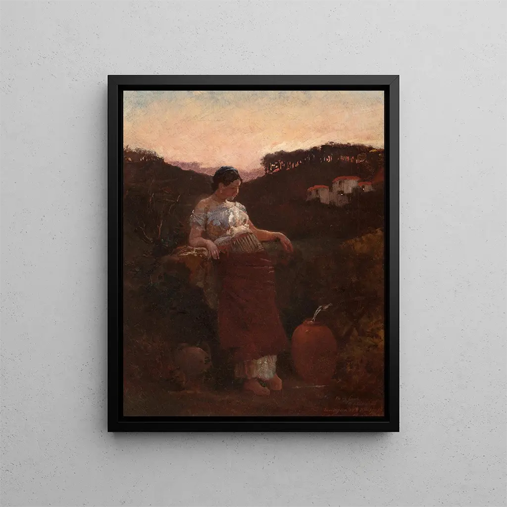 Druk artystyczny na studni - Edwin Howland Blashfield – Fascynujące wprowadzenie W rozległym panoramie historii sztuki niektóre dzieła wyróżniają się zdolnością do uchwycenia chwili, emocji lub atmosfery. "Na studni" Edwina Howlanda Blashfielda jest jednym z tych dzieł, które przenoszą widza do świata pełnego spokoju i kontemplacji. Ten obraz nie tylko odzwierciedla codzienny moment życia, ale także ucieleśnia estetykę, która przekracza granice czasu. Przedstawiając kobietę przy studni, Blashfield zachęca do refleksji nad prostotą codziennych gestów i ich wewnętrznym pięknem. Styl i wyjątkowość dzieła Styl Blashfielda charakteryzuje się staranną dbałością o szczegóły i subtelnym użyciem światła. W "Na studni" delikatne kolory i subtelne odcienie tworzą kojący, niemal senne nastroje. Kompozycja jest starannie wyważona, podkreślając postać kobiecą, jednocześnie harmonijnie integrując elementy otoczenia. Woda w studni, symbol życia i odrodzenia, odgrywa kluczową rolę w tym dziele, podczas gdy pejzaż wokół niej odzwierciedla hojność i gościnność natury. Ten obraz nie ogranicza się do zwykłego przedstawienia; opowiada historię, historię kobiety w interakcji z jej otoczeniem, podkreślając harmonię między człowiekiem a naturą. Artysta i jego wpływ Edwin Howland Blashfield, urodzony w 1848 roku, był artystą, którego prace głęboko inspirowały się ruchem prerafaelitów i amerykańskim realizmem. Jego kariera, naznaczona nieustannym dążeniem do piękna i prawdy, świadczy o chęci podniesienia codzienności na poziom wizualnej poezji. Blashfield potrafił wybić się jako mistrz fresku, ale to w jego obrazach można naprawdę dostrzec jego talent do uchwycenia momentów łaski. Jego wpływ wykracza poza własne dzieła, inspirując wielu współczesnych artystów do eksplorowania relacji między człowiekiem a jego otoczeniem. "Na studni" jest doskonałym przykładem tej poszukiwań, gdzie każdy pociągnięcie pędzla zdaje się rezonować głębokim zrozumieniem ludzkiego losu. Wyjątkowa dekoracja ścienna autorstwa Artema Legranda W ramach dekoracji wnętrz, dzieło