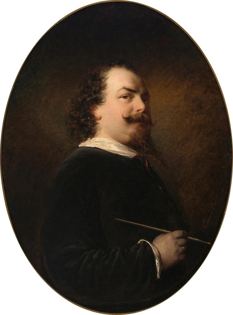 Eduard Ender, urodzony w 1822 roku w Wiedniu, był malarzem, którego twórczość głęboko inspirowała się ruchem romantycznym. Wykształcony w bogatym środowisku artystycznym, potrafił wypracować styl łączący tradycję z innowacją. Ender był uważnym obserwatorem swojego czasu, a jego dzieła, w tym ten autoportret, odzwierciedlają troski epoki, jednocześnie integrując elementy malarstwa klasycznego. Jego wpływ wykracza poza własną twórczość, inspirując wielu współczesnych artystów, którzy widzieli w nim wzór pasji i oddania sztuce. Eksplorując wewnętrzny świat swoich modeli, Ender otworzył drzwi do głębokiej refleksji nad ludzką naturą.