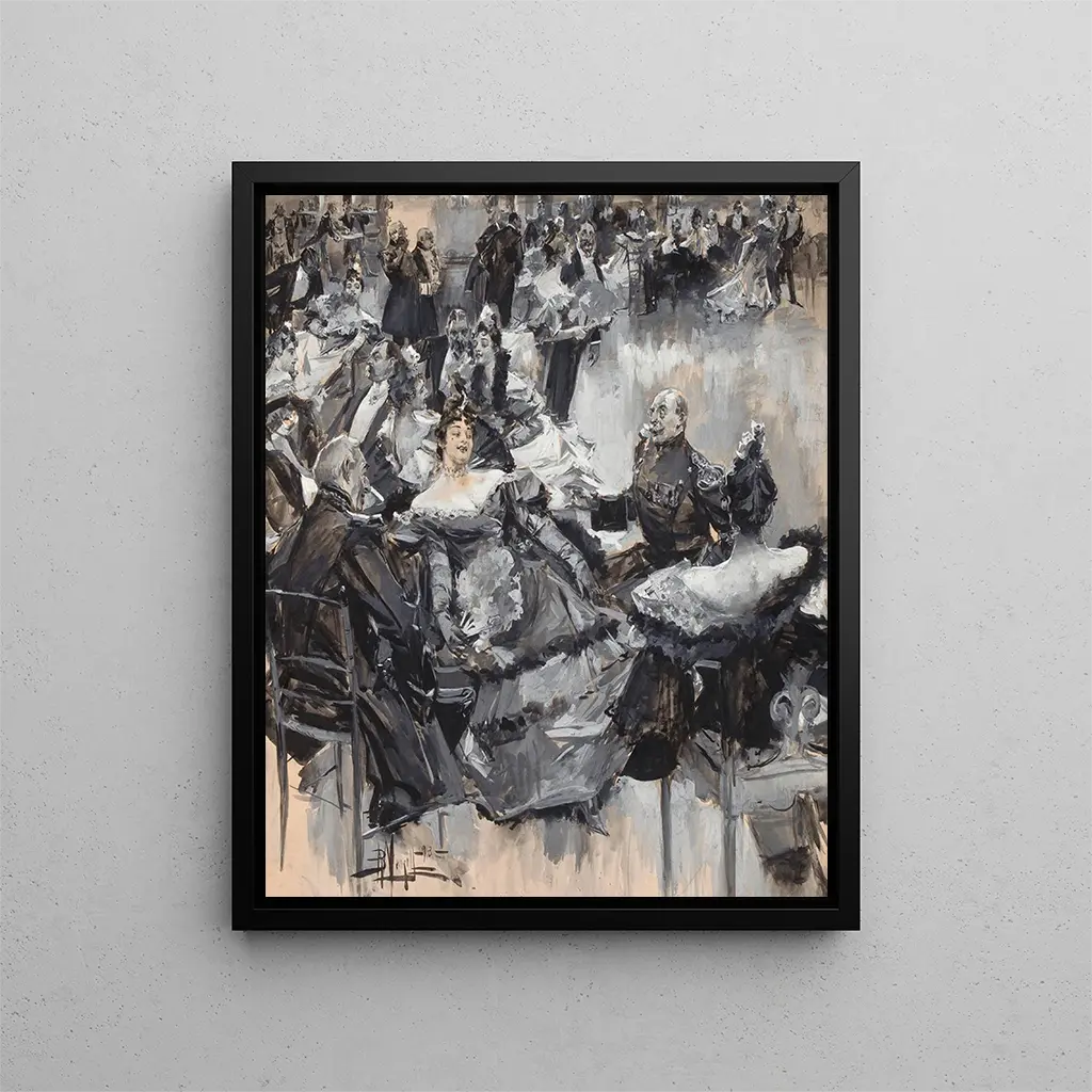 Reprodukcja Bal na ambasadzie w Wiedniu - Albert Beck Wenzell – Wciągające wprowadzenie Obraz "Bal na ambasadzie w Wiedniu" autorstwa Alberta Beck Wenzella to dzieło, które wykracza poza zwykłe malarstwo, uchwycając istotę epoki. W tej żywej scenie artysta przenosi nas w serce tętniącego życiem balu, wydarzenia społecznego, gdzie piękno, muzyka i ruch harmonijnie się przeplatają. Obraz, będący symbolem końca XIX wieku, ukazuje atmosferę świętowania pełną wyrafinowania i elegancji, gdzie każdy szczegół zdaje się opowiadać historię. Postacie, ubrane w stroje z epoki, ożywają pod migoczącymi światłami, zapraszając widza do zanurzenia się w elegancji tej wiedeńskiej nocy. Styl i wyjątkowość dzieła Mistrzostwo techniczne Alberta Beck Wenzella objawia się w pełni w "Bal na ambasadzie w Wiedniu". Artysta korzysta z bogatej i błyszczącej palety barw, od złotych odcieni po głębokie odcienie niebieskiego i czerwonego, tworząc atmosferę zarówno radosną, jak i intymną. Starannie skomponowane efekty świetlne ożywiają twarze i stroje gości, czyniąc je niemal namacalnymi. Każda postać jest przedstawiona z dbałością o szczegóły, podkreślając teksturę tkanin i refleksy akcesoriów. Ta dbałość o detale, połączona z dynamiczną kompozycją, pozwala odczuć ruch tańców i namacalną ekscytację święta. Wenzell potrafi uchwycić nie tylko scenę, ale także ducha epoki, w której bal odzwierciedlał obyczaje i kulturę arystokracji. Artysta i jego wpływ Albert Beck Wenzell, amerykański malarz początku XX wieku, jest znany z umiejętności przedstawiania scen z życia społecznego z niezrównaną delikatnością i precyzją. Pod wpływem impresjonizmu, potrafi wprowadzić do swoich dzieł atmosferę lekkości i płynności. Miał okazję podróżować po Europie, co wzbogaciło jego wizję artystyczną i pozwoliło mu chłonąć wpływy europejskie, zwłaszcza austriackie i francuskie. Jego prace, często skupiające się na tematach codziennego życia i wydarzeniach towarzyskich, odzwierciedlają fascynację interakcją międzyludzką i rytuałami społecznymi. "Bal na ambasadzie w Wiedniu" jest bez wątpienia jednym z jego najbardziej ikonicznych dzieł, świadczącym o jego talencie do uwieczniania ulotnych chwil w stylu zarówno realistycznym, jak i poetyckim. Wyjątkowa dekoracja ścienna podpisana przez Artema Legranda Reprodukcja Bal na ambasadzie w Wiedniu - Albert Beck Wenzell to znacznie więcej niż zwykłe dzieło sztuki; to zaproszenie do zanurzenia się w świecie wyrafinowania i piękna. Podpisana przez Artema Legranda, ta praca stanowi wyjątkową dekorację ścienną