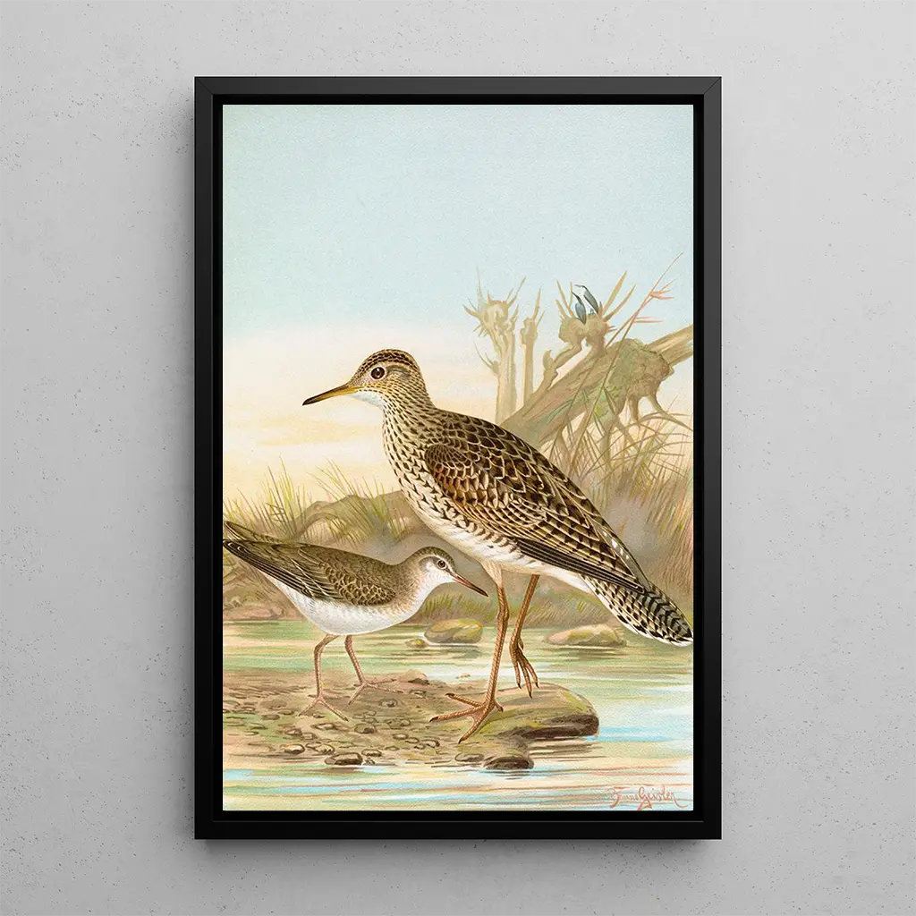Bartramia longicauda Tringoides macularius : harmonia naturalnych kolorów Druk artystyczny Bartramia longicauda Tringoides macularius przywołuje żywą scenę z natury, gdzie odcienie zieleni i błękitu harmonijnie się łączą. Technika akwareli używana przez artystę pozwala uchwycić lekkość upierzenia i delikatność form. Każdy szczegół, od piór po refleksy na wodzie, przyczynia się do stworzenia uspokajającej i kontemplacyjnej atmosfery. Ten obraz zaprasza do zanurzenia się w świecie, w którym piękno fauny jest podkreślane, oddając hołd bogactwu bioróżnorodności. Johann Friedrich Naumann : pionier sztuki ornitologicznej Johann Friedrich Naumann, naturalista i artysta XIX wieku, umiejętnie łączył naukę z sztuką w swoich dziełach. Pod wpływem odkryć swojej epoki, poświęcił karierę badaniu ptaków, stając się ikoną ornitologii. Jego ilustracje, zarówno precyzyjne, jak i estetyczne, świadczą o jego zaangażowaniu w naturę i chęci edukowania społeczeństwa na temat ochrony gatunków. Okres romantyczny, w którym tworzył, również wpłynął na jego styl, łącząc dokładną obserwację z wyrazem artystycznym. Dekoracyjny nabytek z wieloma zaletami Druk artystyczny Bartramia longicauda Tringoides macularius stanowi idealny wybór dekoracyjny do ozdoby salonu, biura lub sypialni. Jakość druku i wierne odwzorowanie kolorów oryginalnych czynią z niego fascynujące dzieło sztuki, które przyciąga wzrok. Wprowadzając ten obraz do swojego wnętrza, dodajesz odrobinę natury i spokoju, jednocześnie wzbogacając swoją dekorację. Jego estetyczna atrakcyjność i przesłanie o ochronie fauny czynią go elementem zarówno pięknym, jak i znaczącym.