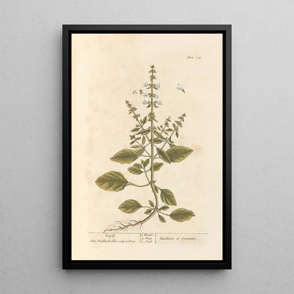 La toile "Basilic" d'Elizabeth Blackwell est une représentation vibrante de cette herbe aromatique prisée, illustrant ses feuilles luxuriantes et sa texture délicate. Les nuances de vert éclatantes, associées à des touches de lumière, donnent vie à cette plante, évoquant son parfum frais et ses propriétés culinaires. Blackwell, à travers sa technique de gravure, parvient à capturer l'essence même du basilic, le rendant presque palpable. Cette œuvre invite à une exploration sensorielle, célébrant la beauté et l'importance du basilic dans la cuisine et la médecine traditionnelle.