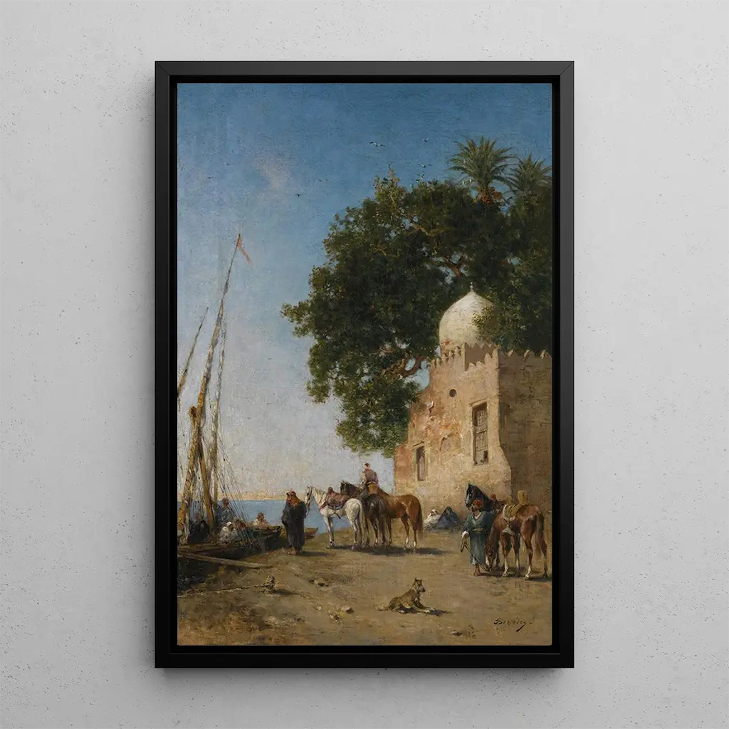 W tej reprodukcji obrazu "Beni Souef Égypte" Narcisse Berchère przenosi nas w serce egipskiego pejzażu pełnego tajemnic i piękna. Kompozycja podkreśla ciepłe, złote odcienie, przywołujące światło słońca na wydmach. Drobne szczegóły postaci i elementów naturalnych tworzą atmosferę spokoju, w której czas zdaje się zatrzymać. Artysta używa techniki malarstwa olejnego, która ożywia tekstury, nadając każdemu ziarnu piasku i odbiciu na wodzie niezwykłą precyzję. To dzieło zachęca do kontemplacji, oferując spojrzenie na minioną epokę, jednocześnie celebrując majestat natury.
