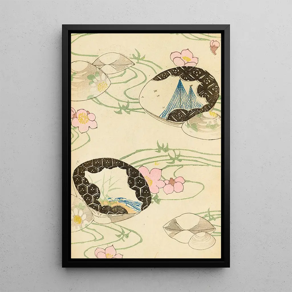 Druk artystyczny Bijutsukai Pl116 przenosi widza w świat efemerycznej piękności, gdzie każdy szczegół jest starannie wyeksponowany. Żywe kolory i kwiatowe motywy splatają się z gracją, tworząc harmonijną kompozycję, która wywołuje delikatność natury. Technika Furuya Korin, łącząca finezję i precyzję, ożywia to dzieło, pozwalając elementom rozkwitnąć na płótnie. Atmosfera emanująca z tego druku artystycznego jest jednocześnie uspokajająca i inspirująca, zachęcając do głębokiej kontemplacji.