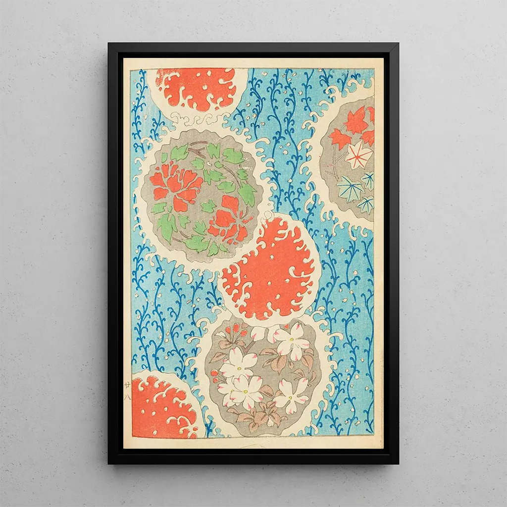 Druk artystyczny Bijutsukai Pl170 przywołuje świat, w którym natura i sztuka spotykają się z rzadką delikatnością. Żywe kolory, od głębokich odcieni niebieskiego po jaskrawe zielenie, tworzą uspokajającą i kontemplacyjną atmosferę. Technika artysty, łącząca akwarelę i tusz, ożywia floralne motywy i stylizowane krajobrazy, zapraszając widza do zanurzenia się w poetyckim świecie. Każdy szczegół jest starannie opracowany, oferując wrażenie ruchu i płynności, jakby elementy natury tańczyły pod naszymi oczami.