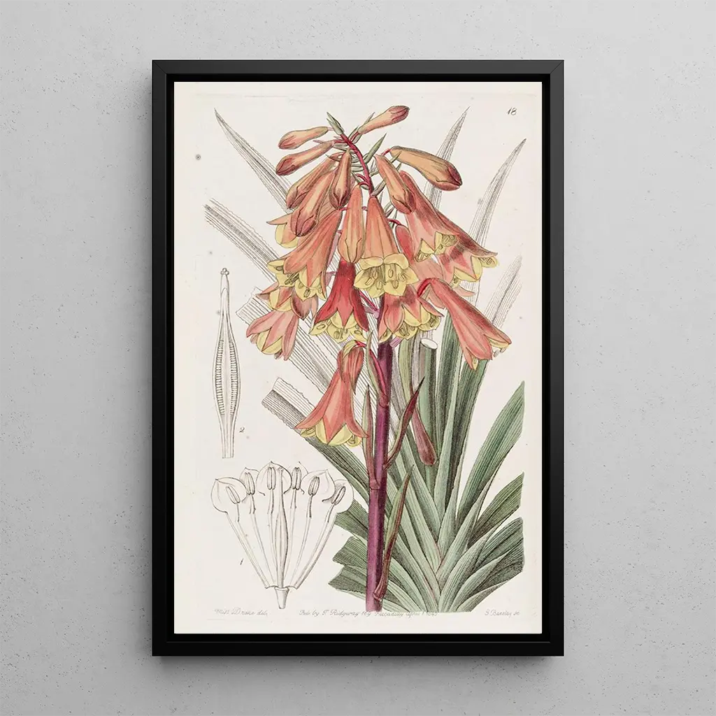 La druk artystyczny de la Blandfordia à bord rugueux révèle une composition délicate, où les teintes de rouge et de vert se mêlent harmonieusement. Cette œuvre, réalisée avec une précision minutieuse, met en avant la beauté singulière de cette plante australienne. Les détails des pétales et des feuilles, rendus avec soin, créent une atmosphère de sérénité et d'émerveillement. La technique de l'aquarelle, utilisée par Sydenham Edwards, permet de capturer la lumière et la texture, offrant ainsi une expérience visuelle immersive.