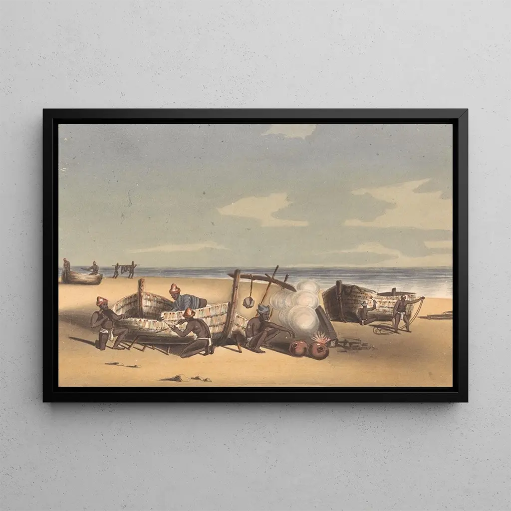 Wybór reprodukcji "Konstrukcja i naprawa łodzi Masoola" to mądra decyzja, aby wzbogacić swoje wnętrze. Niezależnie od tego, czy w salonie, biurze czy sypialni, ten obraz wnosi autentyczność i charakter. Jakość reprodukcji gwarantuje wierne oddanie szczegółów oryginalnego dzieła, jednocześnie oferując niezaprzeczalną wartość estetyczną. Ten obraz zachęca do kontemplacji i marzeń, zamieniając każde spojrzenie w podróż do odległych, morskich horyzontów.