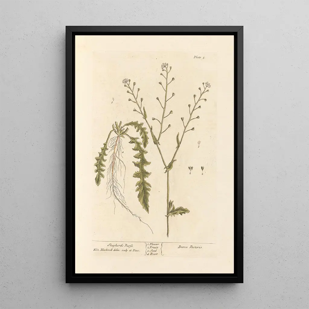 Druk artystyczny "Bourse-à-pasteur" Elizabeth Blackwell to urzekła ilustracja, która podkreśla delikatność tej rośliny. Drobne szczegóły i łagodne kolory ukazują artystyczne podejście pełne poezji. Każdy element kompozycji, od liści po kwiaty, jest starannie przedstawiony, tworząc uspokajającą i harmonijną atmosferę. To dzieło zachęca do wizualnej eksploracji, gdzie piękno natury ukazuje się z gracją i subtelnością.