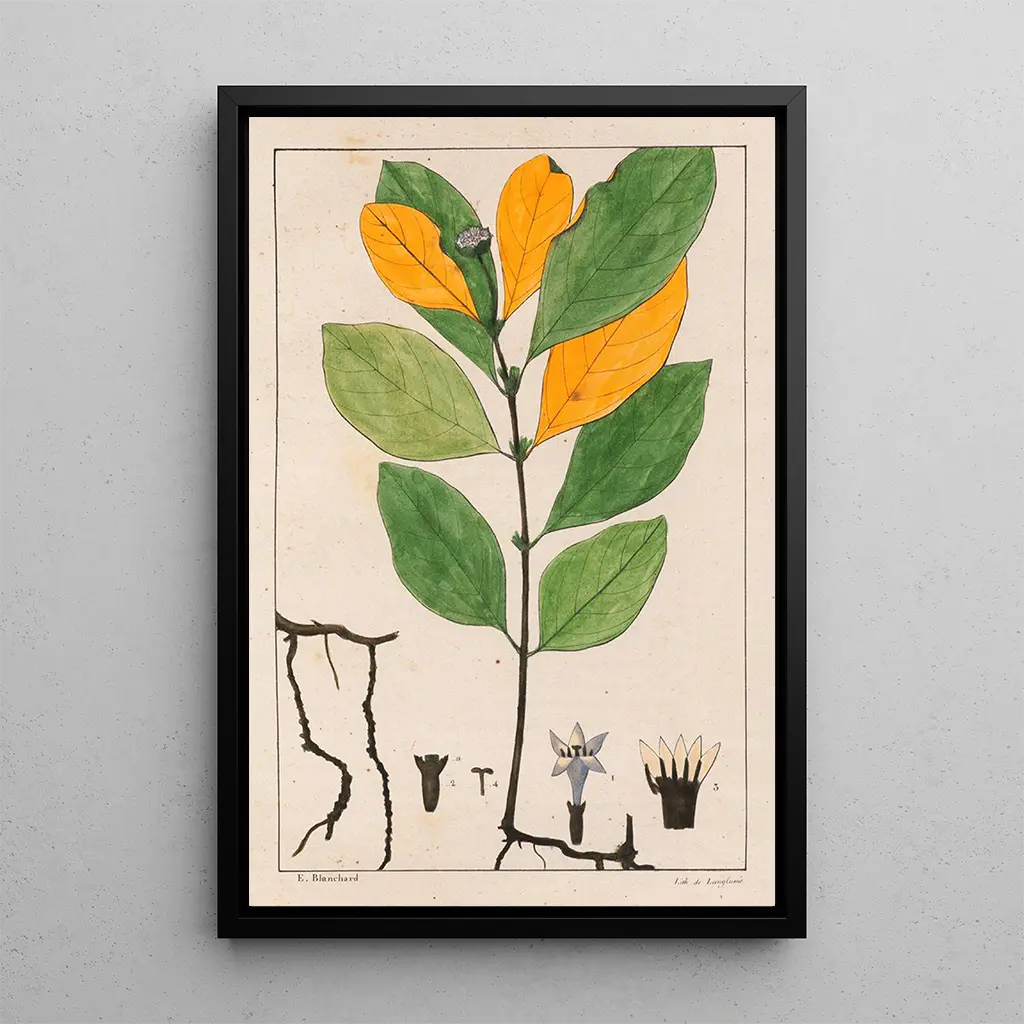 Cepaelis Ipecacuanha : fascynujące botaniczne odkrycie Druk artystyczny Cepaelis Ipecacuanha przenosi nas do świata, w którym natura ukazuje się z delikatnością. Odmiany zieleni, żółci i brązu harmonijnie się ze sobą łączą, tworząc atmosferę zarówno uspokajającą, jak i intrygującą. Technika akwareli, stosowana przez Augusta de Saint-Hilaire'a, pozwala uchwycić lekkość liści i teksturę łodyg. Każdy szczegół jest starannie oddany, zachęcając widza do uważnej kontemplacji tego leczniczego rośliny. Ten obraz, będący prawdziwą hołdem dla bioróżnorodności, przypomina o znaczeniu natury w naszym codziennym życiu. Auguste de Saint-Hilaire : pionier ilustracji botanicznej Auguste de Saint-Hilaire, botanik i ilustrator XIX wieku, poświęcił swoje życie badaniom roślin, zwłaszcza w Ameryce Południowej. Pod wpływem naukowych odkryć swojej epoki, umiał połączyć rygor naukowy z artystyczną wrażliwością. Jego dzieła, takie jak ten druk artystyczny Cepaelis Ipecacuanha, świadczą o jego zaangażowaniu w dokumentowanie flory tropikalnej. Saint-Hilaire odegrał kluczową rolę w rozpowszechnianiu wiedzy botanicznej, a jego ilustracje stały się odniesieniami dla badaczy i miłośników sztuki. Jego dziedzictwo trwa, przypominając o znaczeniu natury w sztuce i nauce. Dekoracyjny nabytek o wielu zaletach Druk artystyczny Cepaelis Ipecacuanha to element dekoracyjny, który ozdobi Twoje wnętrze, niezależnie od tego, czy jest to salon, biuro czy sypialnia. Jakość druku gwarantuje wierne oddanie szczegółów, pozwalając w pełni docenić piękno tego dzieła botanicznego. Estetyczny urok tej płótna tkwi w harmonii kolorów i realistycznym przedstawieniu, wprowadzając odrobinę natury do Twojej dekoracji. Wybierając ten druk artystyczny, stawiasz na dzieło łączące kulturę, naukę i sztukę, jednocześnie wzbogacając przestrzeń życiową o nutę spokoju.