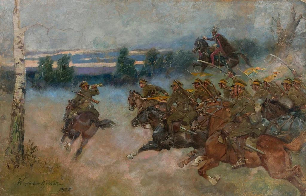 Wojciech Kossak, actif à la fin du XIXe et au début du XXe siècle, est reconnu pour ses œuvres qui mettent en lumière des scènes militaires et historiques. Influencé par le réalisme et le romantisme, Kossak a su allier précision historique et sensibilité artistique. Sa passion pour l'histoire militaire polonaise et européenne l'a conduit à créer des œuvres emblématiques qui témoignent de son talent et de son engagement envers son héritage culturel. Ses tableaux, comme la Charge de cavalerie, sont non seulement des représentations artistiques, mais aussi des récits visuels qui capturent l'esprit de leur temps.