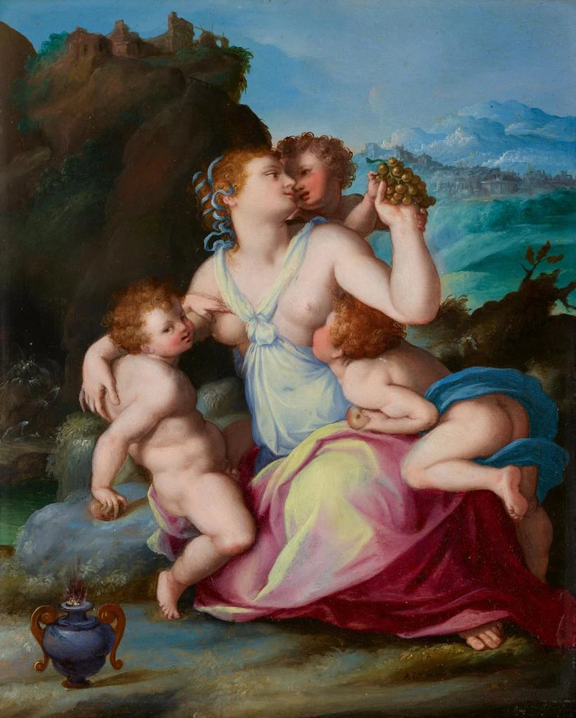 Alessandro Allori, urodzony we Florencji, jest uważany za jednego z głównych artystów późnego renesansu. Uczeń Michała Anioła, jego styl czerpie z nauk wielkich mistrzów, jednocześnie rozwijając własną tożsamość. Allori jest znany z umiejętności łączenia różnych wpływów artystycznych, od manieryzmu po bardziej barokowe elementy, co pozwala mu tworzyć dzieła o dużej wizualnej i emocjonalnej bogactwie. "Charité" jest doskonałym przykładem jego talentu, ukazując, jak potrafi przekazywać wartości moralne poprzez sztukę. Poruszając uniwersalne tematy, takie jak miłość i współczucie, Allori wywarł wpływ na wielu artystów swojego czasu i przyszłe pokolenia, pozostawiając niezatarte ślady na europejskim pejzażu artystycznym.