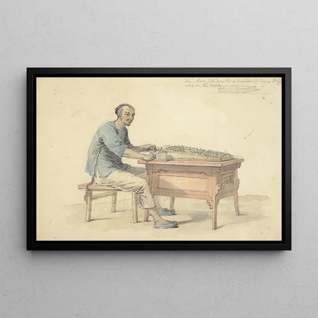 Reprodukcja obrazu "Chiński rolnik sprzedający betel" to idealny element dekoracyjny, który wzbogaci Twoje wnętrze, niezależnie od tego, czy jest to salon, biuro czy sypialnia. Jakość druku gwarantuje wierne oddanie kolorów i szczegółów oryginalnego dzieła, dodając odrobinę egzotyki i autentyczności Twojej aranżacji. To dzieło, o niezaprzeczalnej estetyce, staje się punktem centralnym, który wzbudza ciekawość i podziw, jednocześnie zapraszając do kontemplacji tradycji i kultury chińskiej.