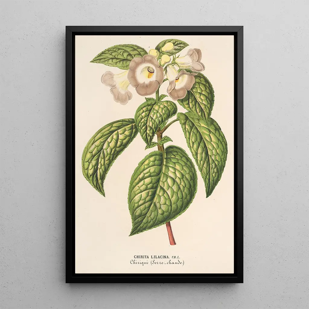 Druk artystyczny Chirita lilacina przenosi nas w świat łagodności i finezji. To dzieło podkreśla subtelne odcienie kwiatu, z delikatnym fioletem, który miesza się z akcentami bieli i zieleni. Technika akwareli używana przez Lemaire pozwala ożywić każdy szczegół, oddając hołd efemerycznej urodzie tej rośliny. Atmosfera emanująca z tego płótna jest pełna poezji, zachęcając widza do zachwytu nad prostotą i elegancją natury.