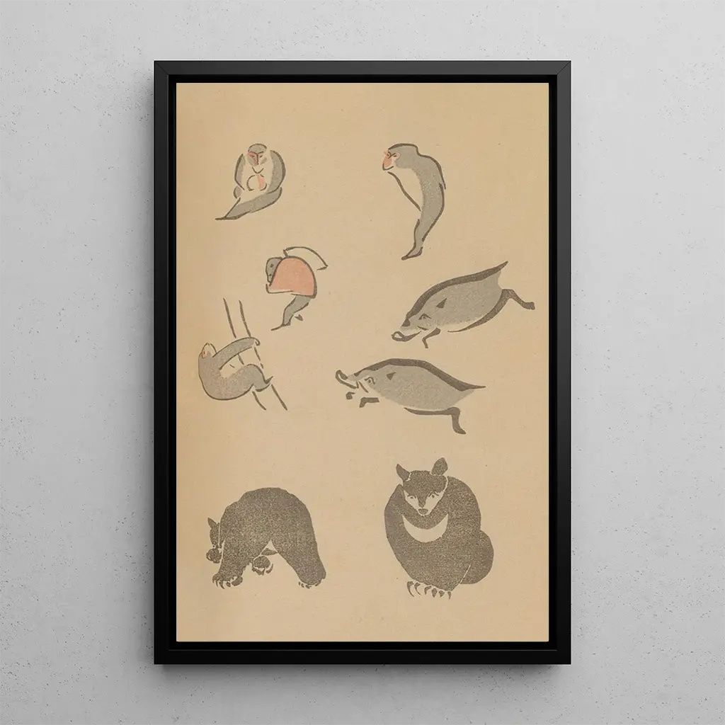 Dans cette reproduction de Choju ryakugashiki Pl05, Masayoshi Kitao nous plonge dans un univers où la nature et les animaux cohabitent en harmonie. Les couleurs vibrantes, allant des verts éclatants aux rouges profonds, créent une atmosphère dynamique et vivante. La technique du druk artystyczny ukiyo-e, avec ses lignes délicates et ses détails minutieux, permet de capturer la beauté éphémère des sujets représentés. Chaque élément, qu'il s'agisse d'un oiseau en plein vol ou d'une fleur épanouie, semble respirer, invitant le spectateur à contempler la richesse de la vie sauvage.