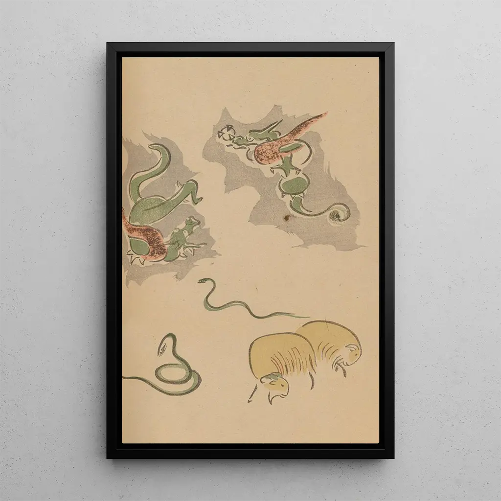 Druk artystyczny obrazu Choju ryakugashiki Pl11 przenosi nas do świata, w którym japońska fauna jest prezentowana z niezwykłą finezją. Żywe kolory i drobiazgowe detale zwierząt uchwyconych na płótnie ukazują wyjątkowe rzemiosło. Atmosfera emanująca z tego dzieła jest jednocześnie żywa i spokojna, zachęcając widza do docenienia piękna natury. Każdy element, od kolorowych piór po gracji postawy zwierząt, świadczy o uważnym obserwowaniu i pasji do świata przyrody.