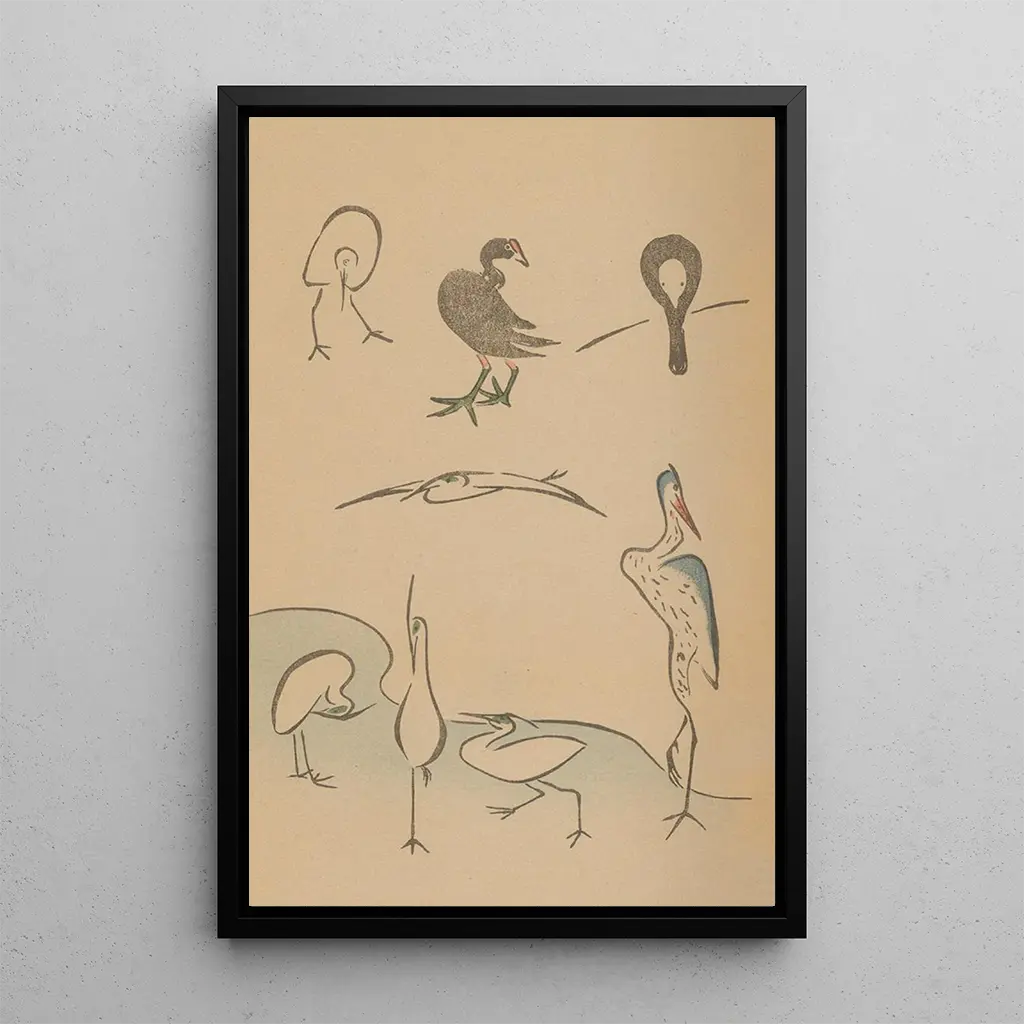 Druk artystyczny Choju ryakugashiki Pl22 autorstwa Masayoshi Kitao przenosi nas do świata, w którym natura i wyobraźnia splatają się ze sobą. Żywe kolory, od jaskrawych zieleni po głębokie czerwienie, wywołują subtelną harmonię między elementami. Technika japońskiej drzeworytniczej, z jej płynnymi liniami i drobiazgowymi detalami, tworzy atmosferę zarówno spokojną, jak i dynamiczną. Każdy element kompozycji wydaje się opowiadać historię, zachęcając widza do zgłębiania subtelności tego fascynującego dzieła. Światło odgrywa kluczową rolę, podkreślając piękno form i tekstur, jednocześnie nadając tej scenie namacalną żywotność.