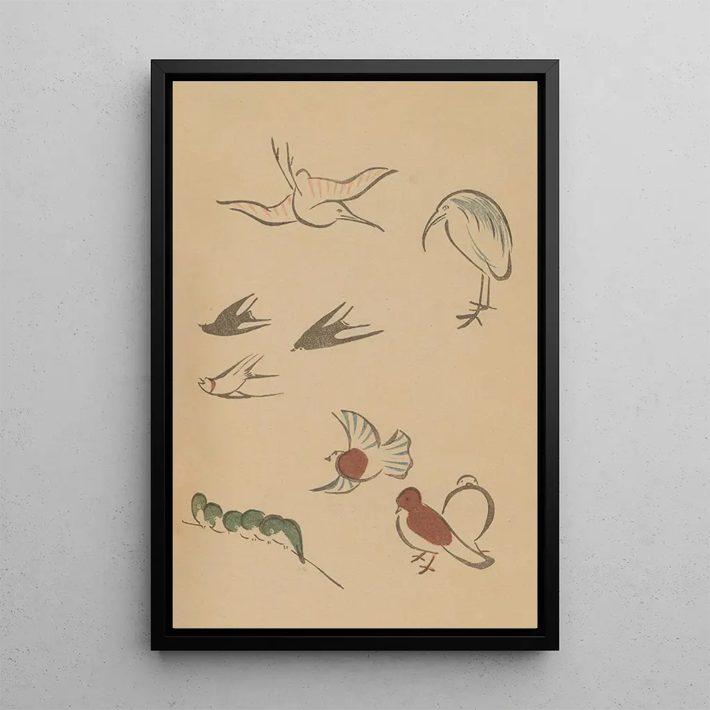Druk artystyczny Choju ryakugashiki Pl23 autorstwa Masayoshi Kitao przenosi nas w zaczarowany świat, gdzie fauna i flora rozwijają się w wizualnej symfonii. Delikatne odcienie niebieskiego i zielonego, połączone z akcentami żywych kolorów, tworzą żywą i radosną atmosferę. Technika druku, z jej precyzyjnymi liniami i misternymi motywami, pozwala uchwycić efemeryczną piękność natury. Każdy szczegół, od piór ptaków po płatki kwiatów, jest oddany z taką finezją, że zdaje się niemal ożywać. To dzieło zaprasza do pełnej immersji w poetycki i naturalny świat.