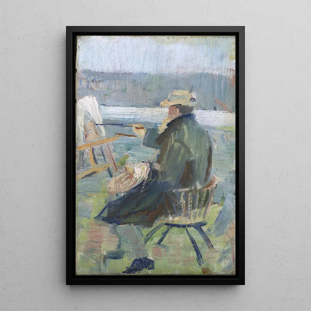 Christian Krohg, urodzony w 1852 roku, jest jedną z najważniejszych postaci realizmu w Norwegii. Jego twórczość charakteryzuje głęboka empatia wobec przedstawianych tematów, niezależnie od tego, czy są to portrety, sceny z codziennego życia czy pejzaże. Pod wpływem wielkich mistrzów europejskich, Krohg wypracował unikalny styl łączący precyzję i emocje. Jego zaangażowanie społeczne i zainteresowanie walkami klas pracujących odzwierciedlają się w jego dziełach. "Christian Krohg na swoim sztaludze" jest świadectwem jego oddania sztuce i życiu, uchwycając cenny moment jego procesu twórczego.