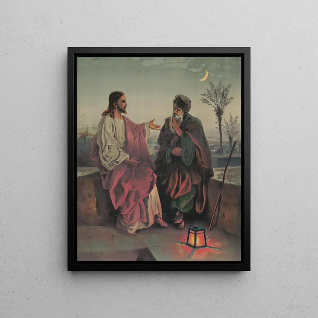 L'œuvre "Christ et Nicodème" de Harris Jones Co. représente un moment clé du Nouveau Testament, où Nicodème, un pharisien, vient rencontrer Jésus pour discuter de la naissance spirituelle. Cette scène, souvent interprétée comme une métaphore de la quête de vérité, illustre les tensions entre la tradition religieuse et la nouveauté du message chrétien. Harris Jones Co., dont le style se caractérise par une approche réaliste et expressive, parvient à capturer l'émotion de ce dialogue nocturne. Les couleurs sombres et les lumières contrastées accentuent le mystère de cette rencontre, rendant l'œuvre à la fois captivante et touchante. En décoration intérieure, cette pièce peut apporter une profondeur spirituelle et une atmosphère contemplative, parfaite pour des espaces tels que des salons ou des bibliothèques. La richesse narrative de l'œuvre invite à la réflexion et à la discussion, faisant d'elle un choix idéal pour ceux qui apprécient les thèmes religieux dans leur décoration. Découvrez cette reproduction sur Artem Legrand.