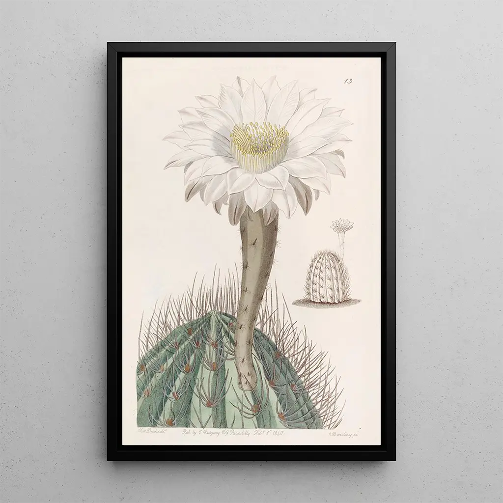 Le tableau Cierge à torche blanc, signé Sydenham Edwards, évoque une ambiance de sérénité et de mystère. La représentation d’un cierge illuminé, dont la flamme vacillante semble capturer l’essence même de la lumière, crée une atmosphère intime et chaleureuse. Les nuances de blanc et de jaune, délicatement nuancées, apportent une profondeur visuelle qui attire le regard. La technique de l’aquarelle, utilisée avec finesse, permet de rendre la texture de la cire et la luminosité de la flamme, offrant ainsi une expérience visuelle immersive et poétique.
