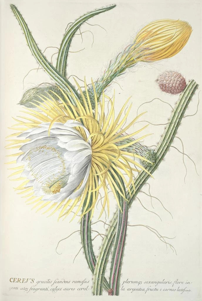 Cierge III, kolejne fascynujące dzieło Georga Dionysiusa Ehreta, wyróżnia się żywą prezentacją flory. Ten druk artystyczny oddaje istotę natury poprzez jaskrawe kolory i delikatne formy. Odmiany żółci i różu splatają się, tworząc żywy obraz, który zdaje się niemal oddychać. Technika akwareli, opanowana przez Ehreta, pozwala osiągnąć jasność i głębię, które oddają hołd pięknu kwiatów. Ten obraz to prawdziwa zachęta do zanurzenia się w świat kolorów i światła, gdzie każdy szczegół jest starannie obserwowany.