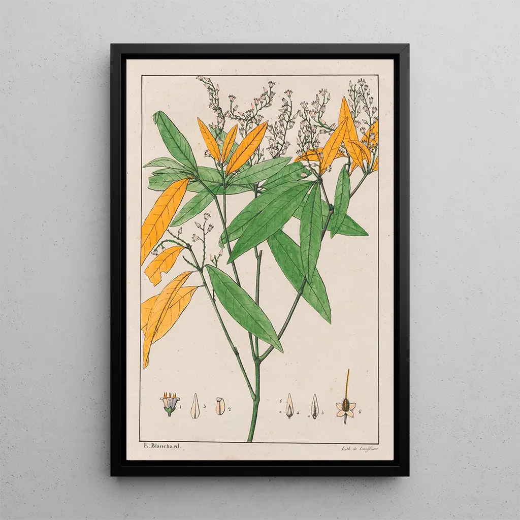 La druk artystyczny de Conohoria Lobolobo nous transporte au cœur des forêts luxuriantes, où cette plante rare se distingue par ses formes et ses couleurs vibrantes. Les teintes éclatantes de vert et de violet se mêlent dans une danse visuelle, évoquant la richesse de la biodiversité. La technique d'illustration d'Auguste de Saint-Hilaire met en valeur chaque détail, des nervures des feuilles aux nuances délicates des fleurs. Cette œuvre est bien plus qu'une simple représentation botanique ; elle est une invitation à explorer la beauté et la complexité de la nature.