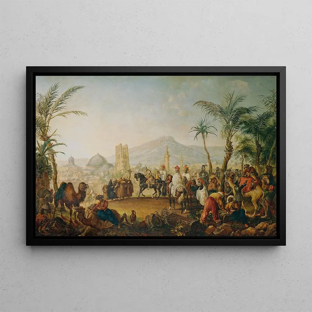 Le tableau "Croisé" de Johann Nepomuk Hoechle évoque une scène empreinte de sérénité et de mystère. La composition, centrée sur un personnage en prière, est baignée d'une lumière douce qui filtre à travers des nuages délicats. Les couleurs pastel, mêlant des nuances de bleu et de beige, créent une atmosphère apaisante, presque méditative. La technique de Hoechle, caractérisée par des coups de pinceau fluides, donne vie à une scène qui invite à la contemplation. Chaque détail, du visage du personnage aux éléments naturels environnants, contribue à une ambiance spirituelle, rendant cette reproduction du tableau "Croisé" particulièrement captivante.
