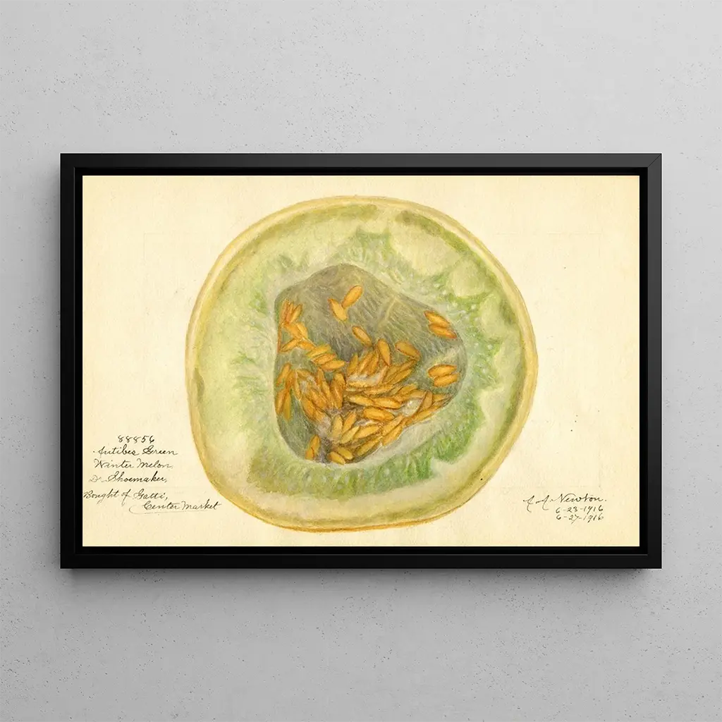 Druk artystyczny "Cucumis melo Antibes Green" autorstwa Amandy Almiry Newton celebruje piękno owoców z niezwykłą delikatnością. To żywe dzieło ukazuje dojrzały melon, którego odcienie zieleni i żółci przywołują na myśl świeżość i witalność. Technika Newton, charakteryzująca się drobiazgowymi detalami i subtelnym światłem, ożywia ten owoc, niemal namacalny. Atmosfera dzieła jest jednocześnie radosna i uspokajająca, zachęcając widza do docenienia prostoty i piękna natury.