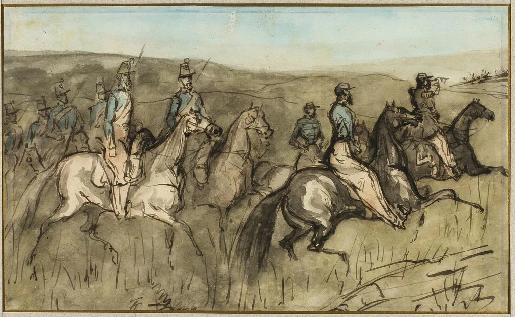 Ćwiczenie kawalerii na łące - Constantin Guys