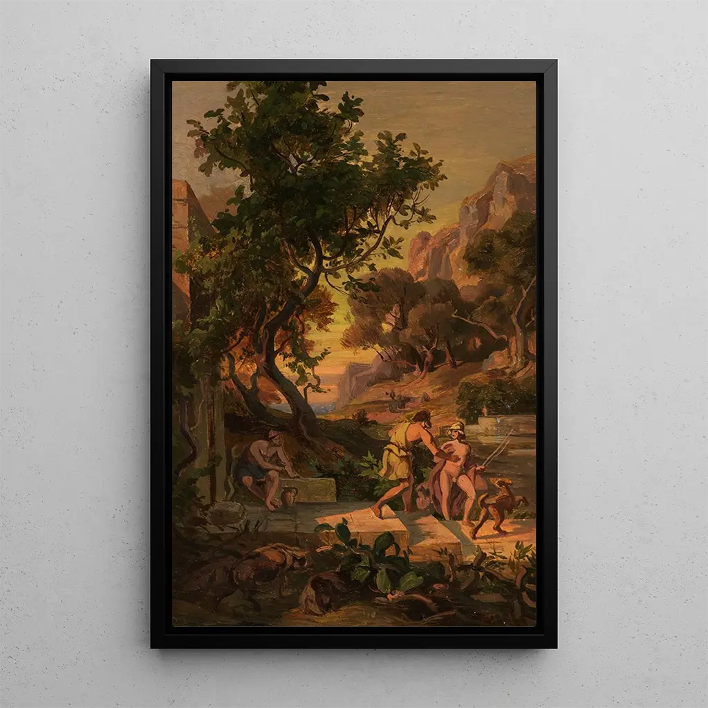 Friedrich Preller l'Ancien, actif au XIXe siècle, est reconnu pour ses œuvres inspirées de la mythologie et de la littérature classique. Influencé par le romantisme, il a su marier des éléments narratifs à une esthétique raffinée. Ses tableaux, souvent empreints de mélancolie, témoignent d'une époque où l'art cherchait à exprimer des émotions profondes et des récits épiques. Preller a contribué à redéfinir la peinture historique en Allemagne, et son travail sur le Cycle de l'Odyssée est un exemple parfait de son talent à capturer l'imaginaire collectif.