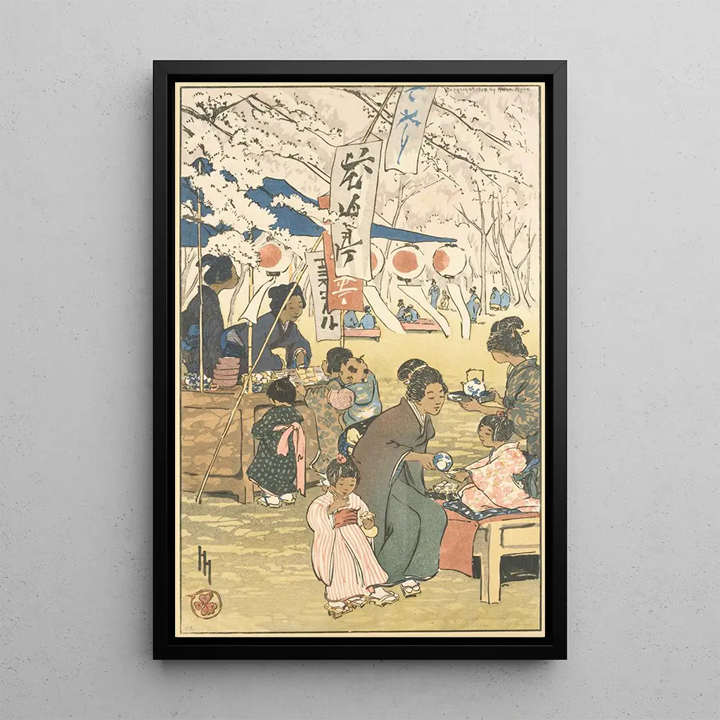 W "Le temps des fleurs à Tokyo" Helen Hyde uchwyciła istotę ulotnego momentu, w którym piękno kwitnących wiśni miesza się z codziennym życiem. Delikatna kompozycja, z pastelowymi odcieniami i akcentami jaskrawego różu, wywołuje atmosferę spokoju i kontemplacji. Postacie, często ubrani w tradycyjne kimona, harmonijnie wtapiają się w ten kwiatowy pejzaż, tworząc poetycką interakcję między człowiekiem a naturą. Technika akwareli, z subtelnymi niuansami, podkreśla lekkość sceny, zachęcając widza do zanurzenia się w tym idyllicznym wyobrażeniu Japonii.