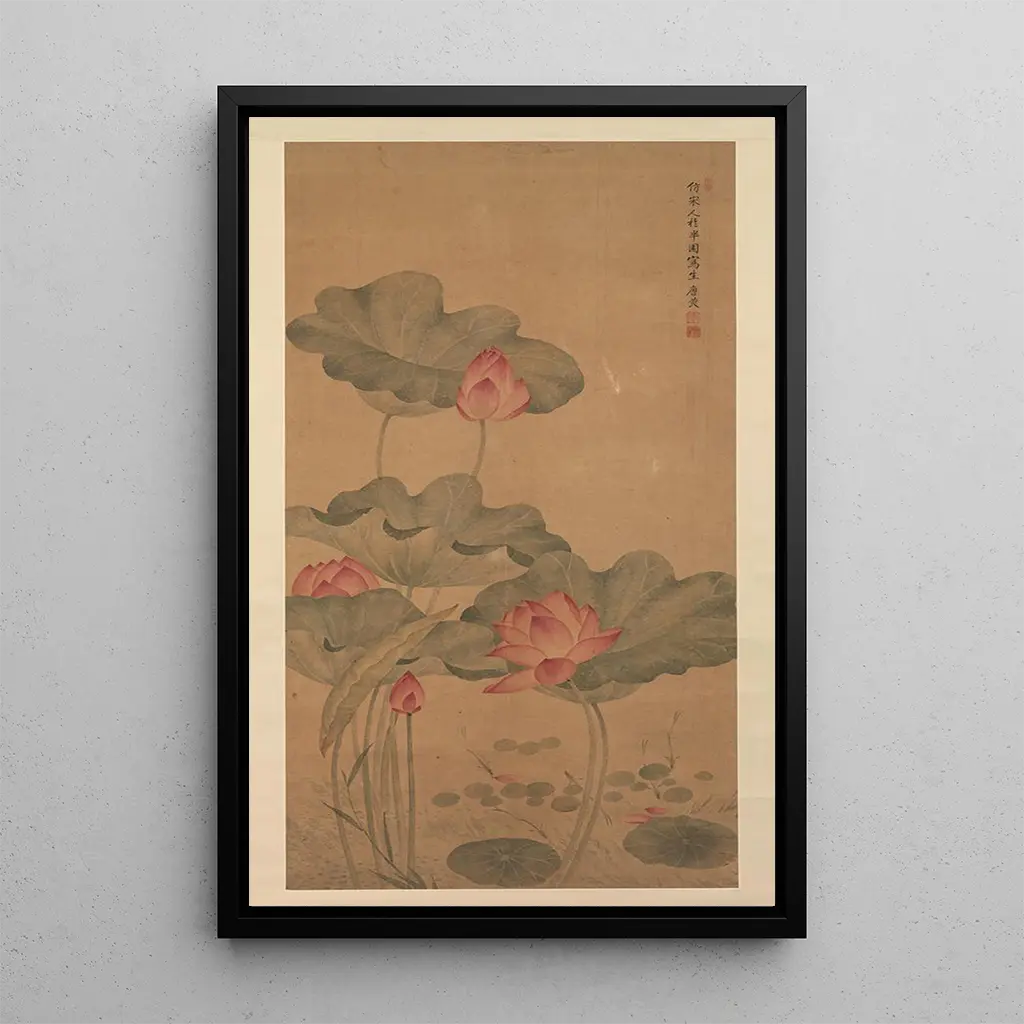 Druk artystyczny Lotosał czerwony i ryba Tang Guang to urzekające dzieło, które celebruje harmonię między fauną a florą. Żywe kolory lotosału, kontrastujące z delikatnością tonów wodnych, tworzą żywą i uspokajającą scenę. Technika malarstwa tuszem, typowa dla sztuki chińskiej, pozwala artyście uchwycić lekkość ruchów ryb i majestat kwiatów. To dzieło wywołuje uczucie wewnętrznego spokoju, zapraszając widza do zanurzenia się w świecie ciszy i naturalnego piękna.